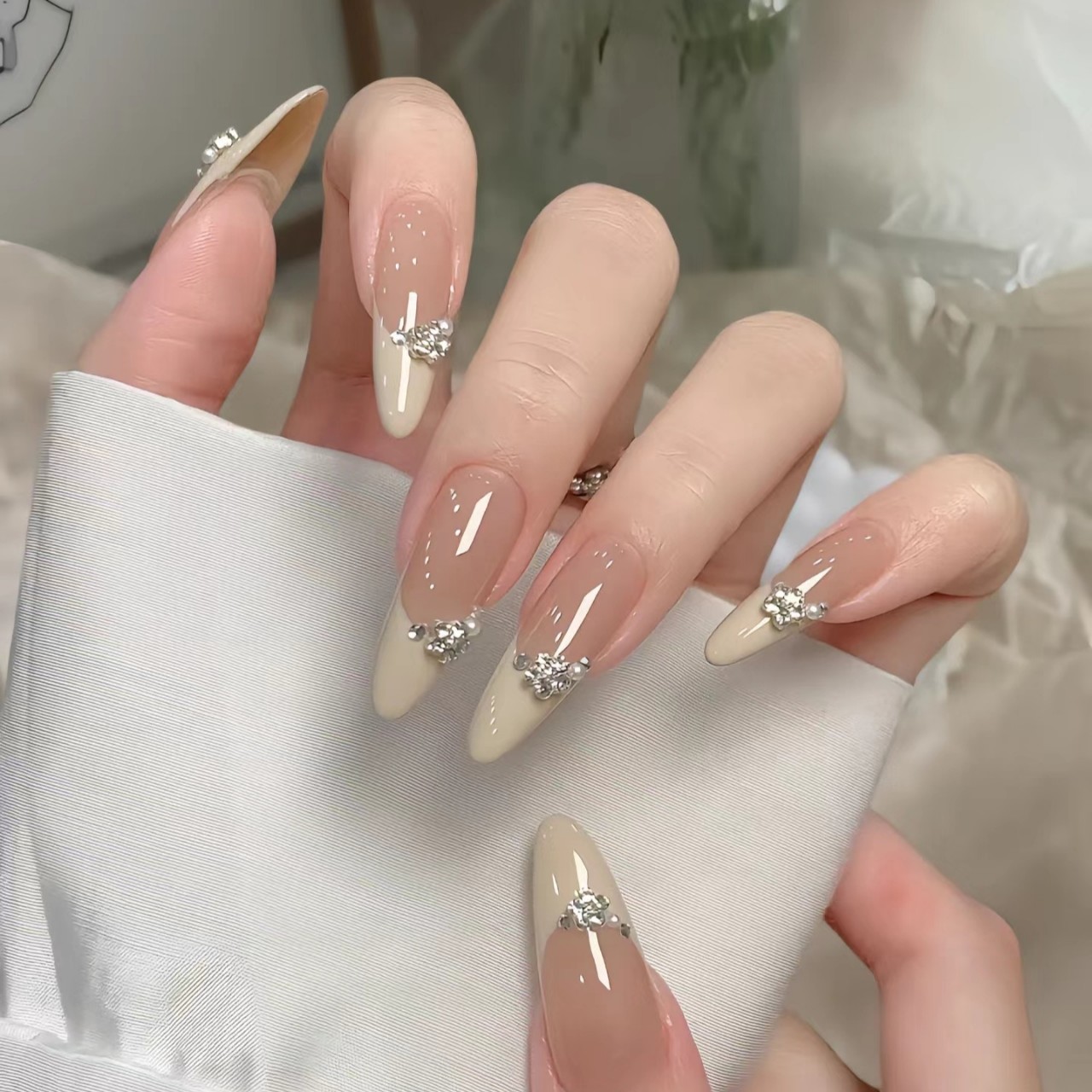 純粋な手作りのネイルの夏の新型のフラッシュの長いタイプのフラッシュのダイヤモンドの新婦の結婚する甲