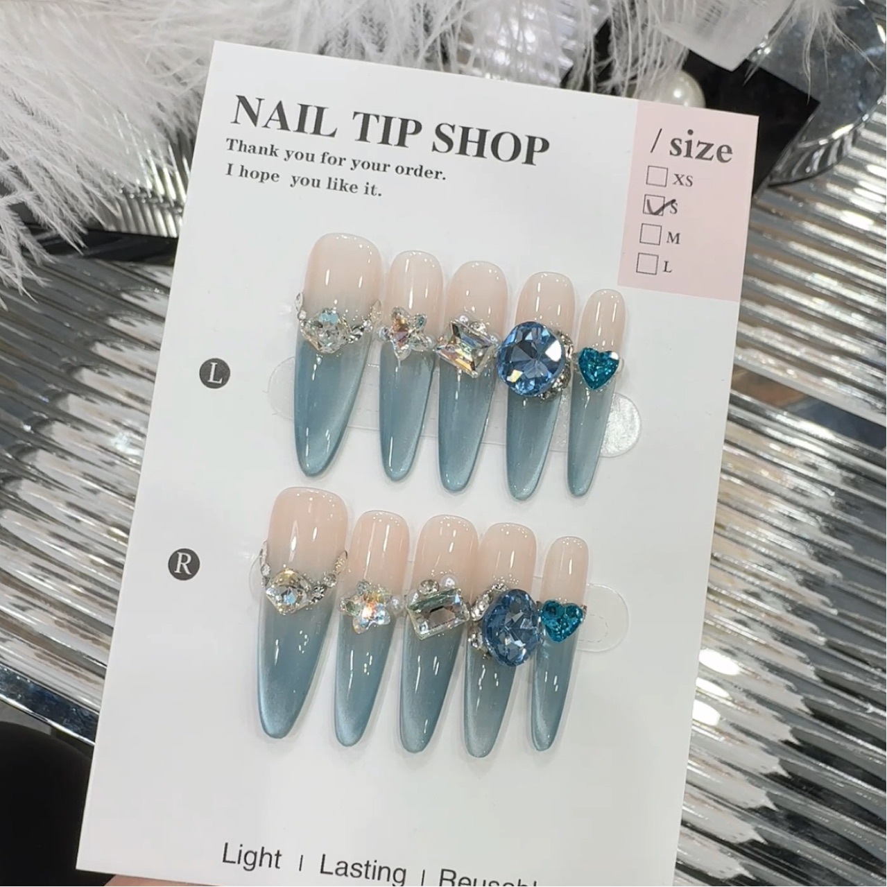 【ブルーの秘境】純粋な手作りのネイルは甲片の雰囲気感を身につけて、高級な爆発が優しくて、猫の目が白くて透き通っています。