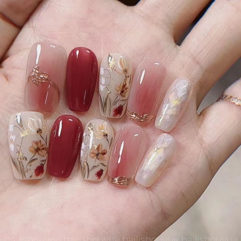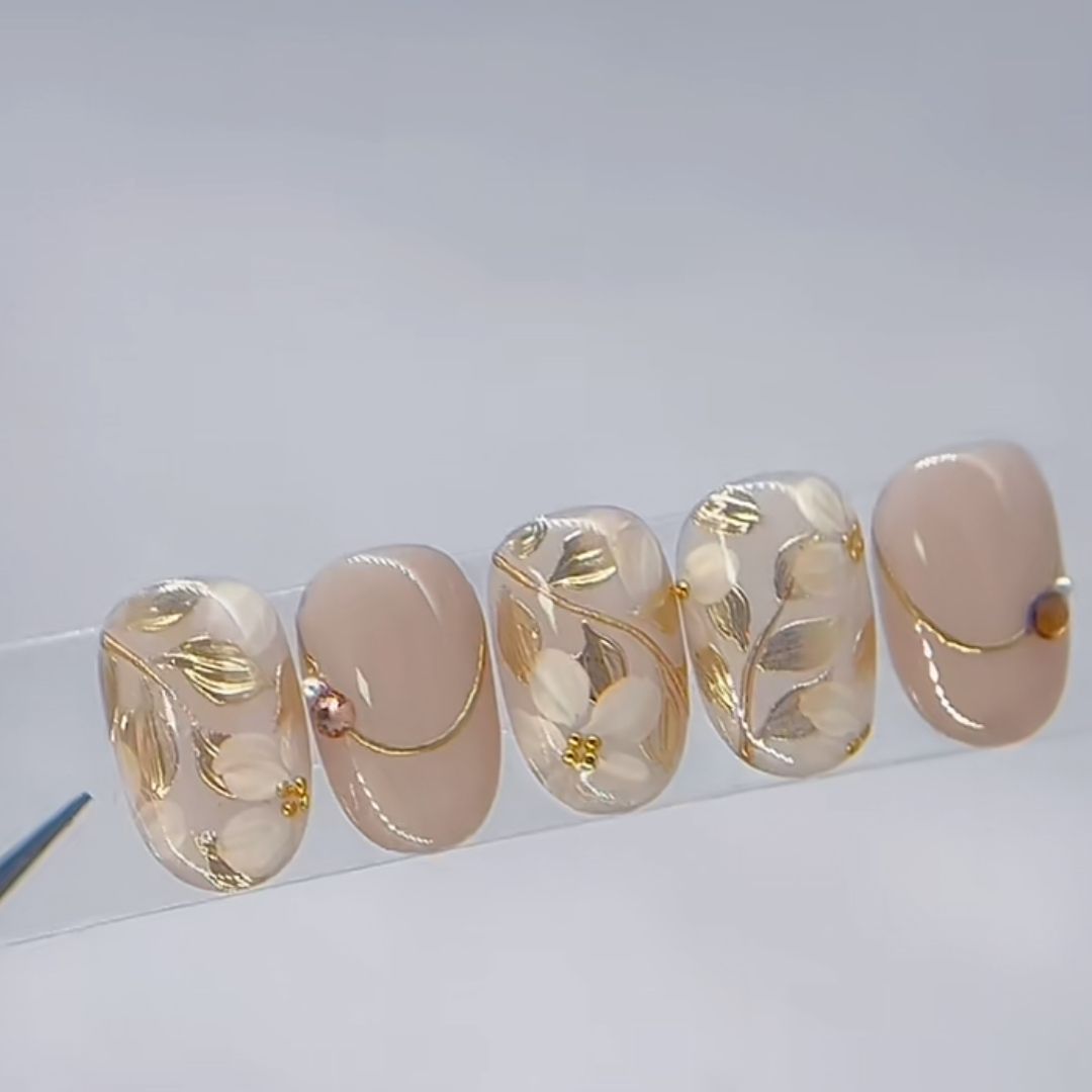 新中式国风典雅壁彩流金美甲贴纸法式花朵浮雕立体穿戴甲装饰品