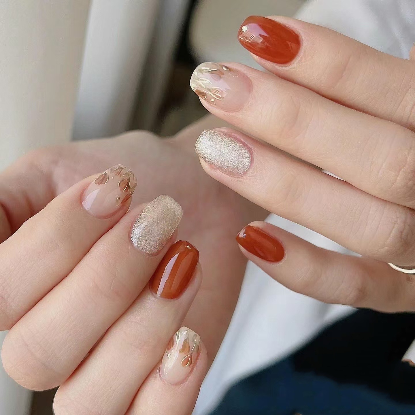偽の爪は秋冬の美ラードの琥珀色の完成品を貼ることができます。