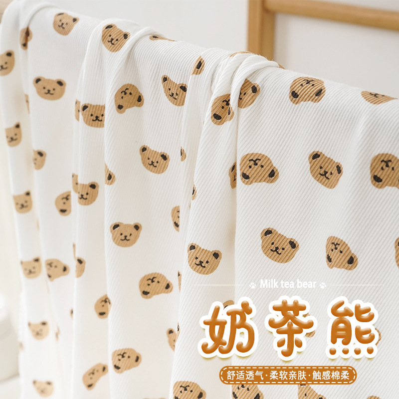 純綿二重ガーゼちりめん熊蝶結びアニメプリント生地ホームウェアパジャマ綿生地