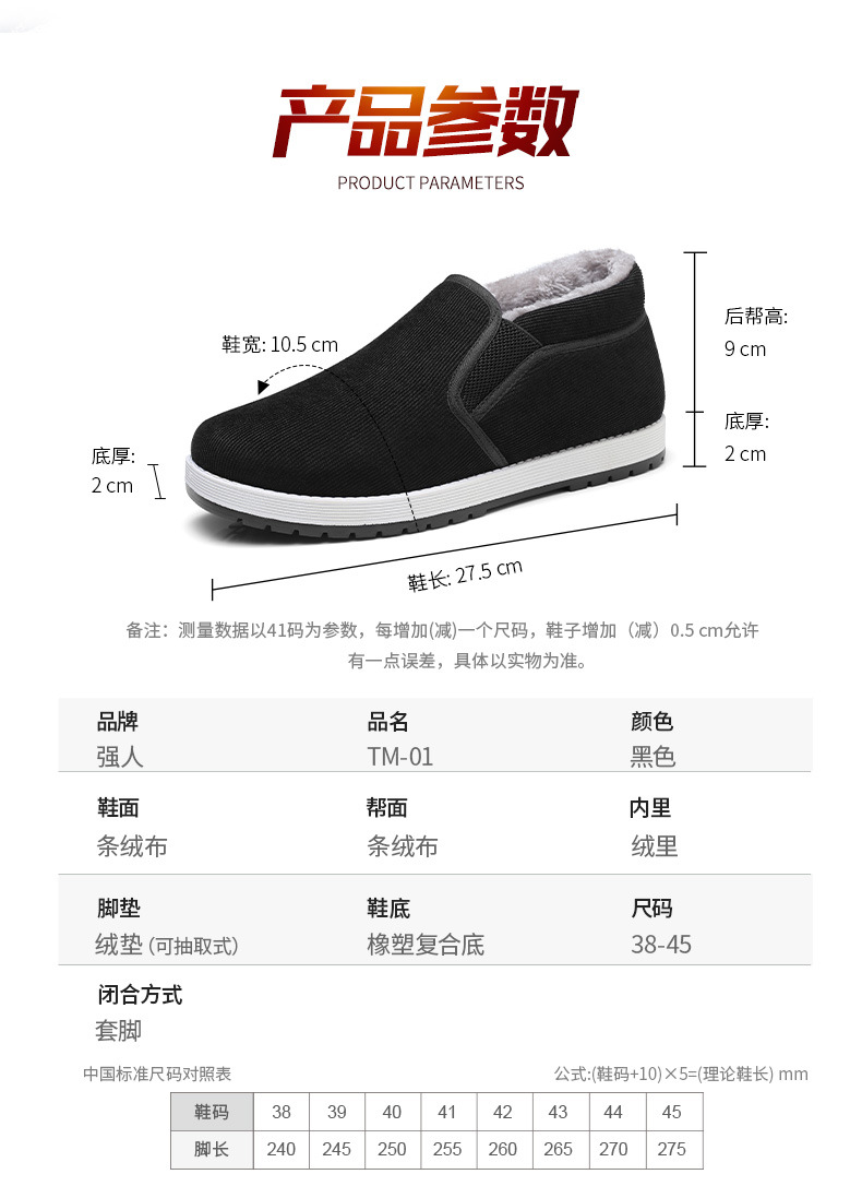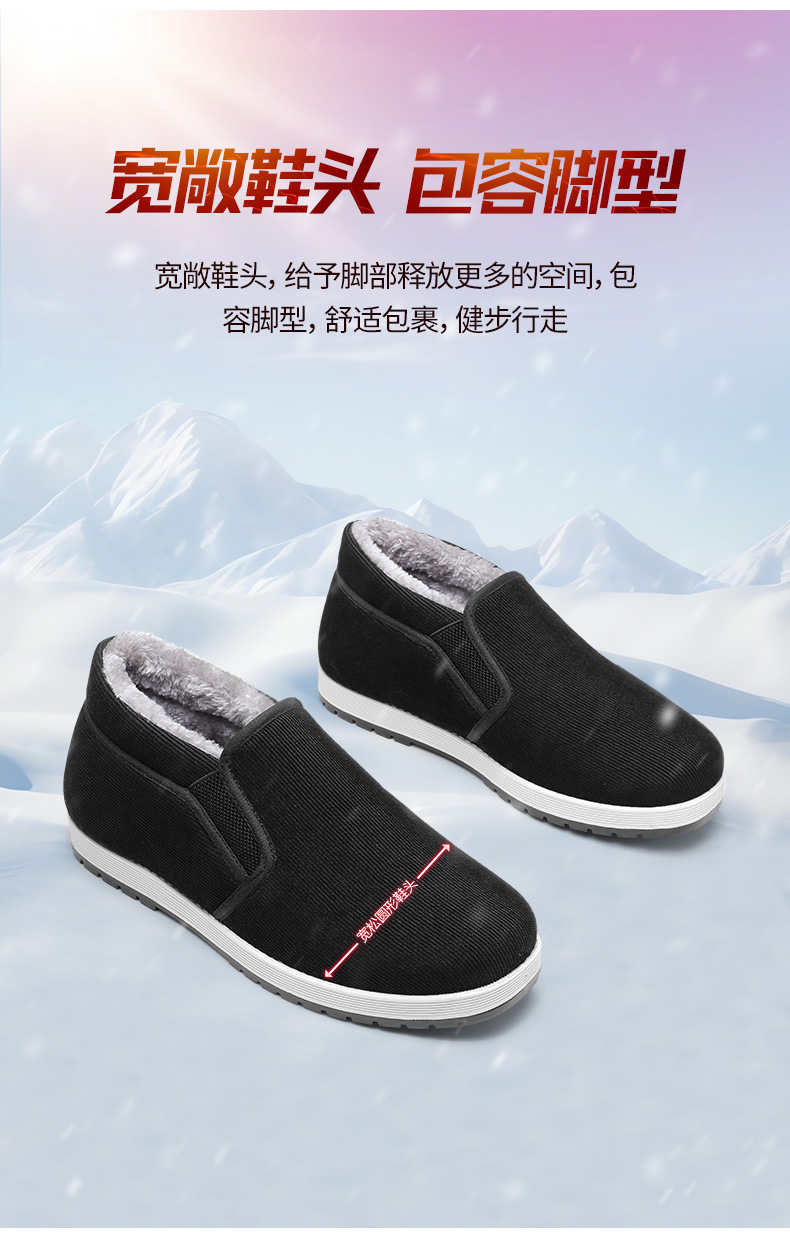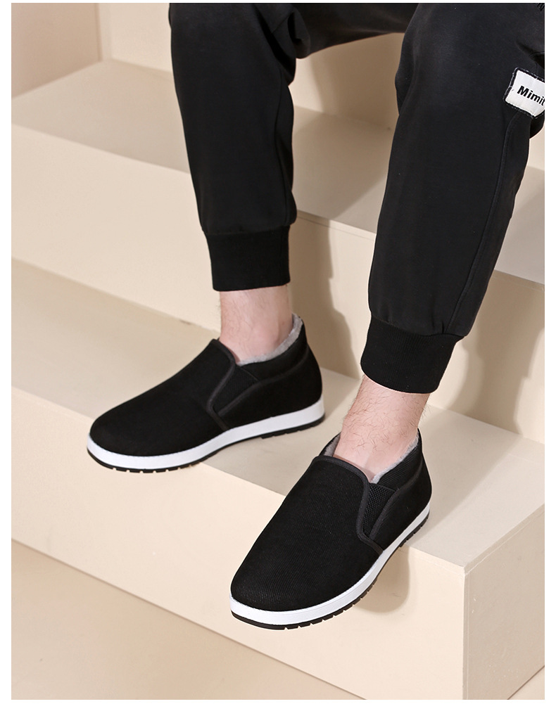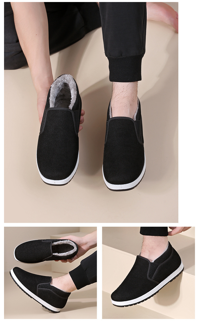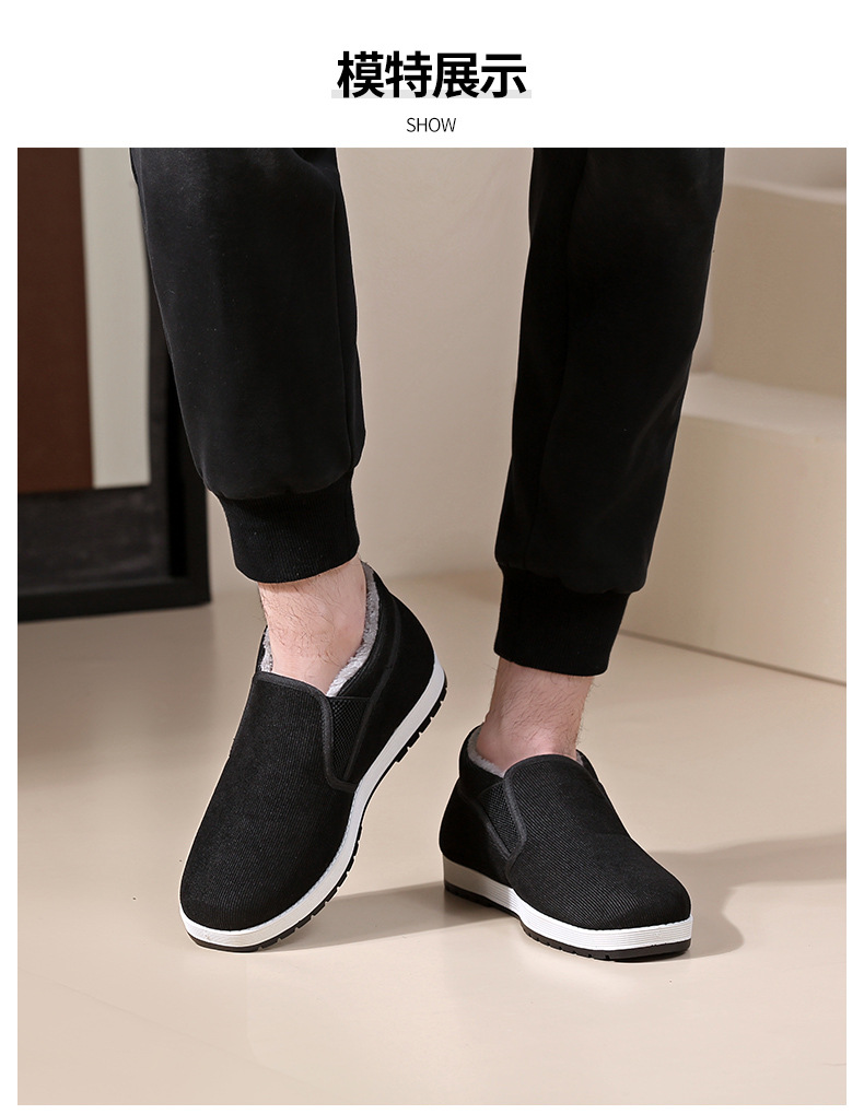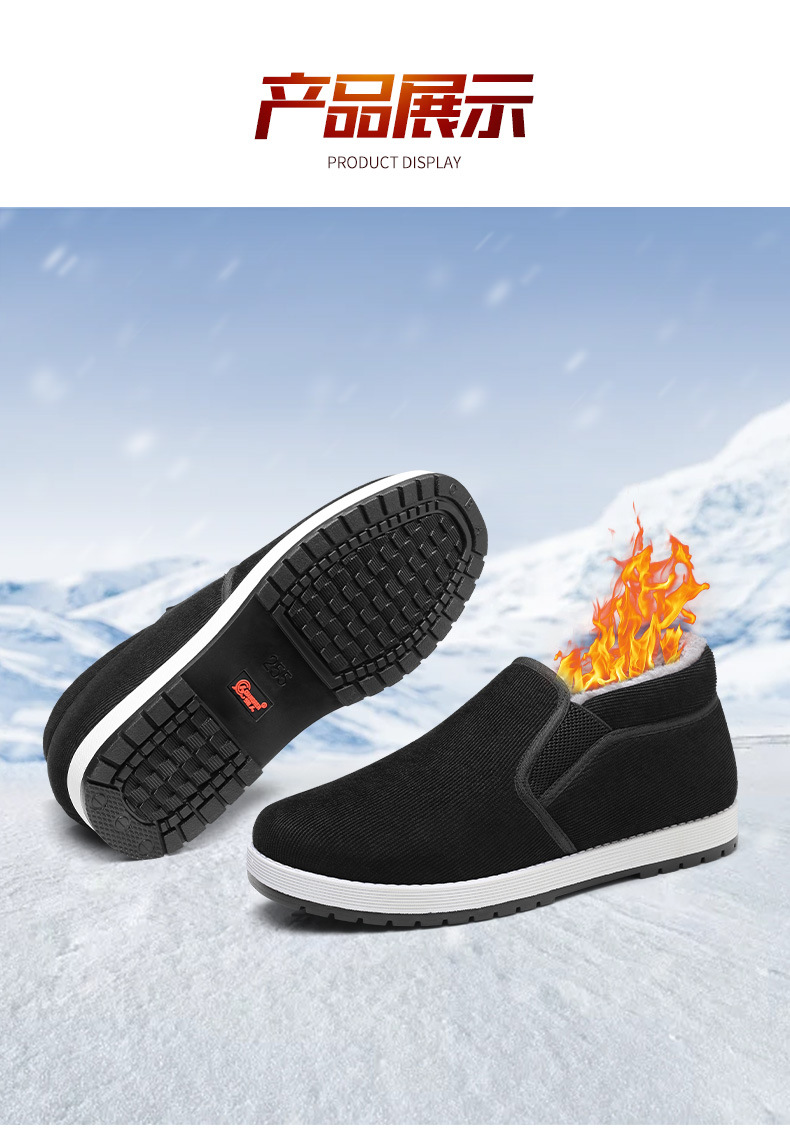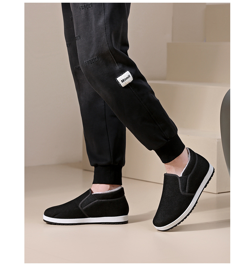 ジーハ3515強人老北京布靴メンズ冬用裏起毛暖かいカジュアル綿靴厚底スリッポン綿布靴