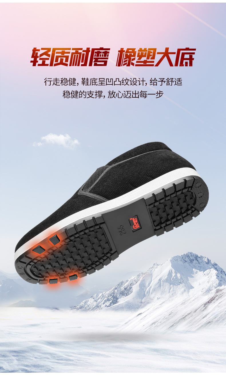 老北京布鞋男冬加绒保暖棉鞋千层底劳保鞋厚底舒适防滑耐磨爸爸鞋