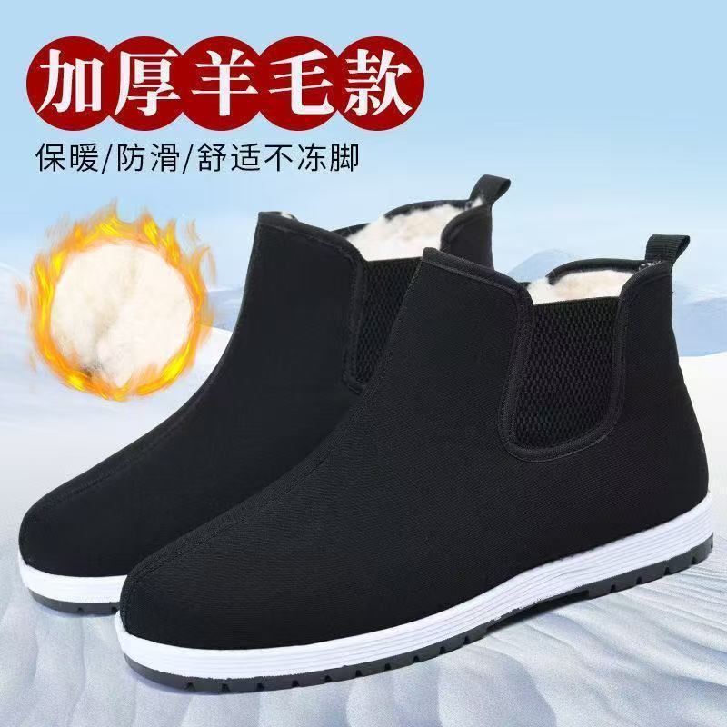 冬季加厚保暖棉靴老北京男士棉鞋软底防滑高帮靴高帮布鞋男靴