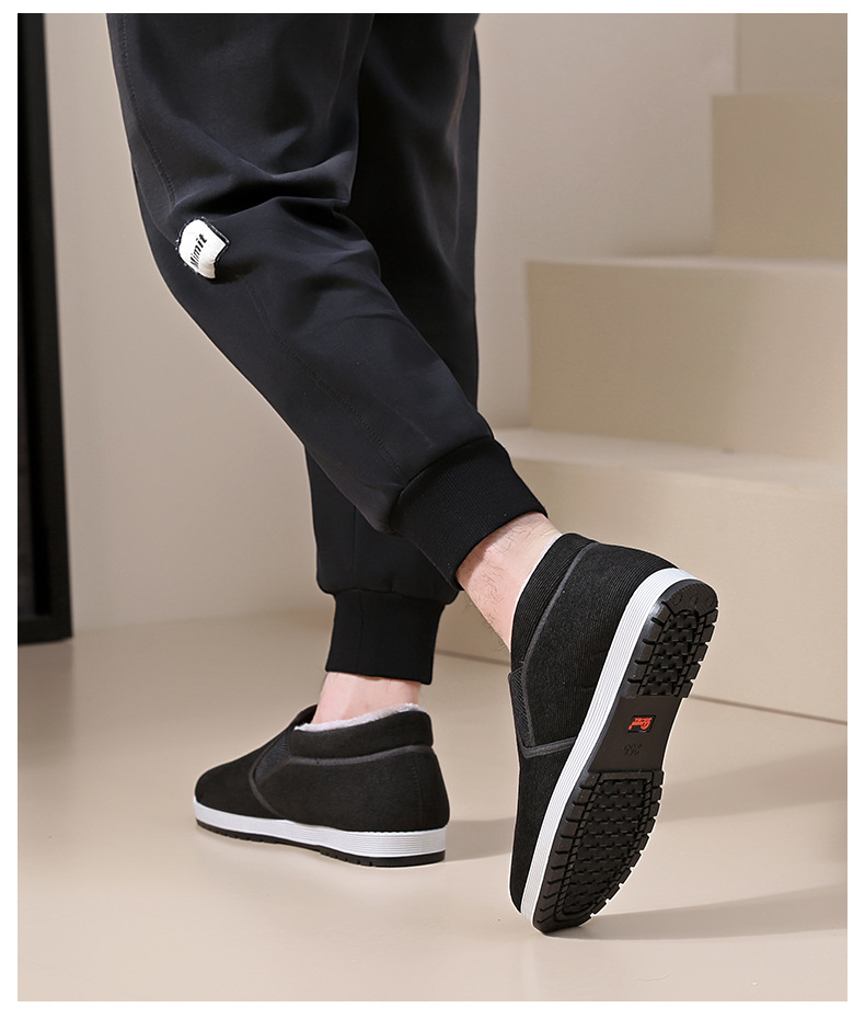 冬の古い北京布靴、男性用ベルベット暖かいハイトップコットンシューズ、男性用滑り止め厚みのあるロングベルベットブラックワークシューズ