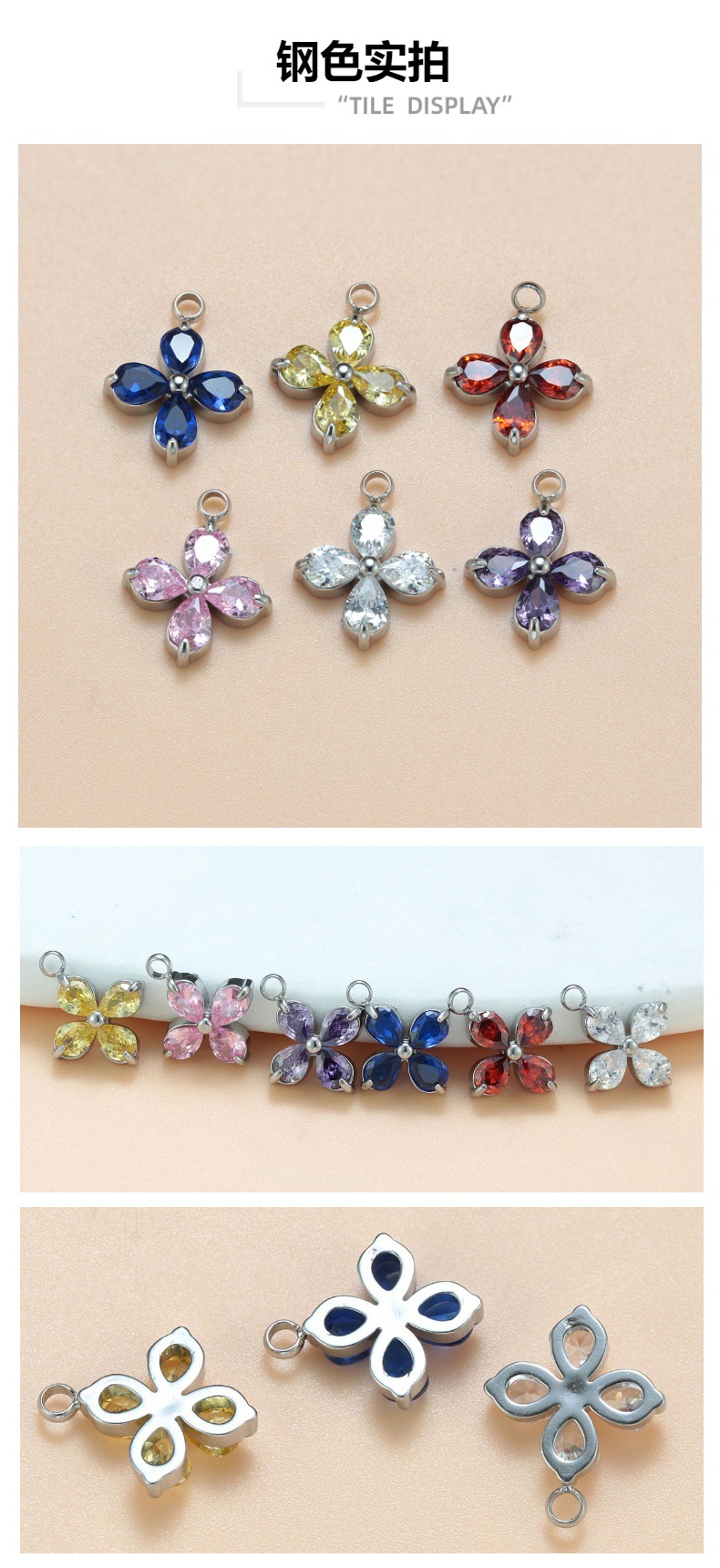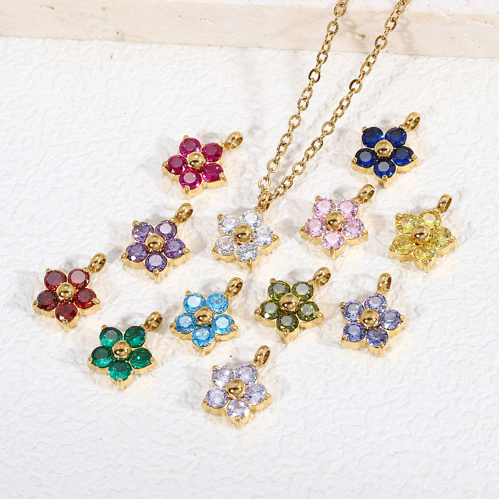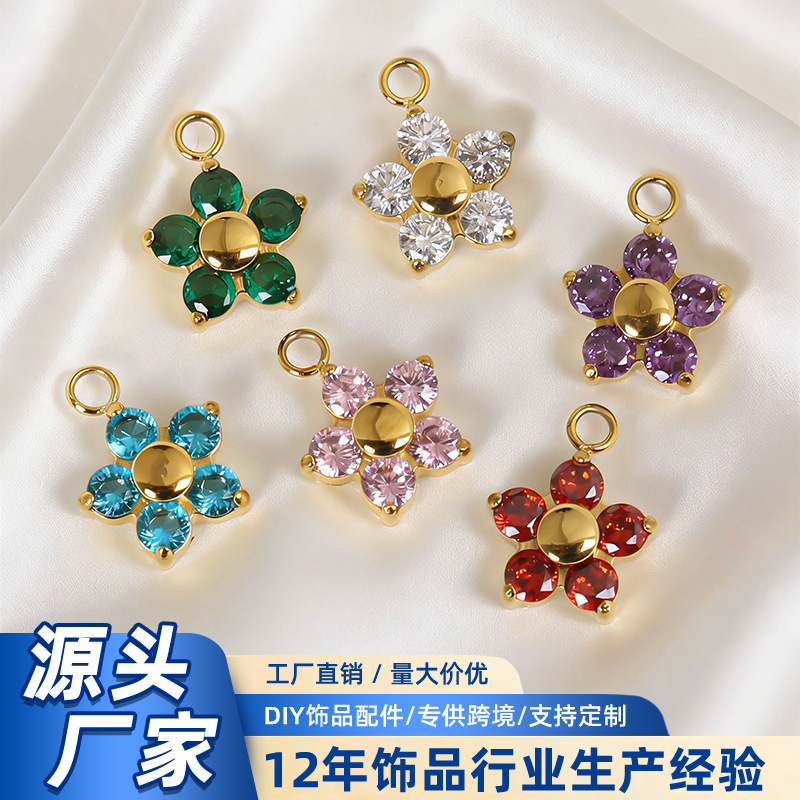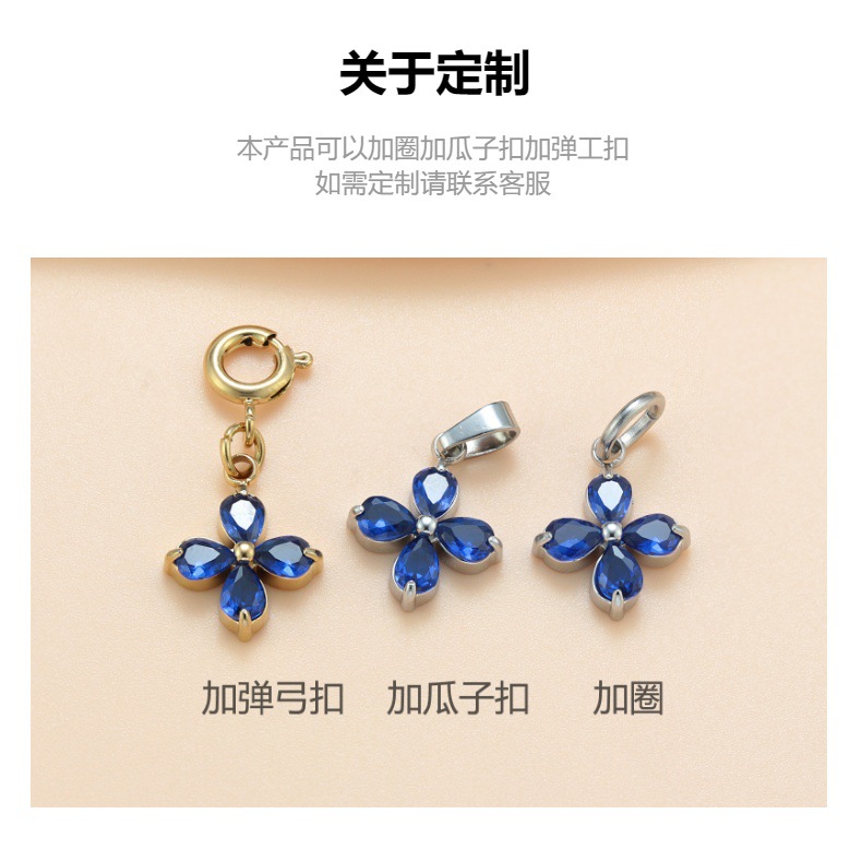 钛钢钻托镶锆石梅花吊坠 生日石小花朵项链吊坠项链DIY饰品配件