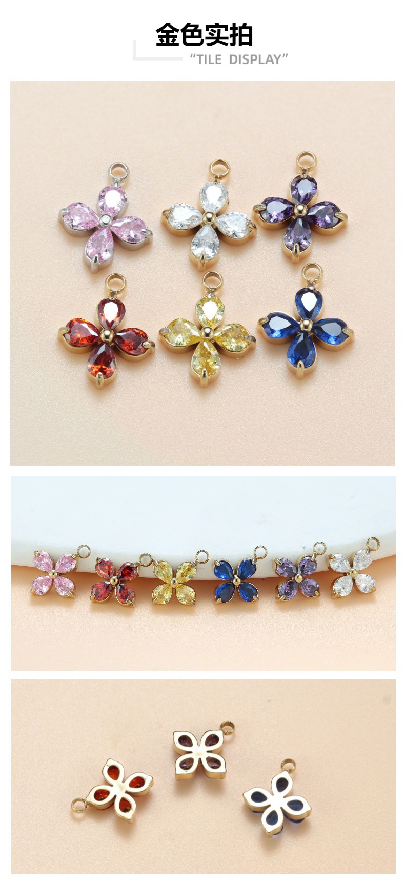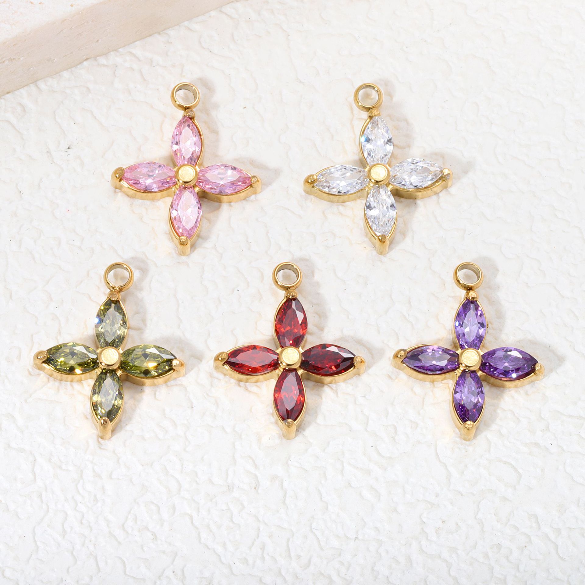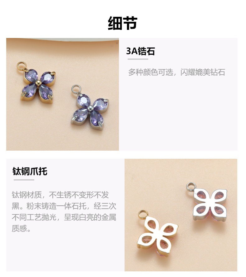 チタン鋼爪托四葉草ジルコン小ペンダント軽豪華小衆ジルコン花びら手作りDIYネックレスブレスレットペンダント
