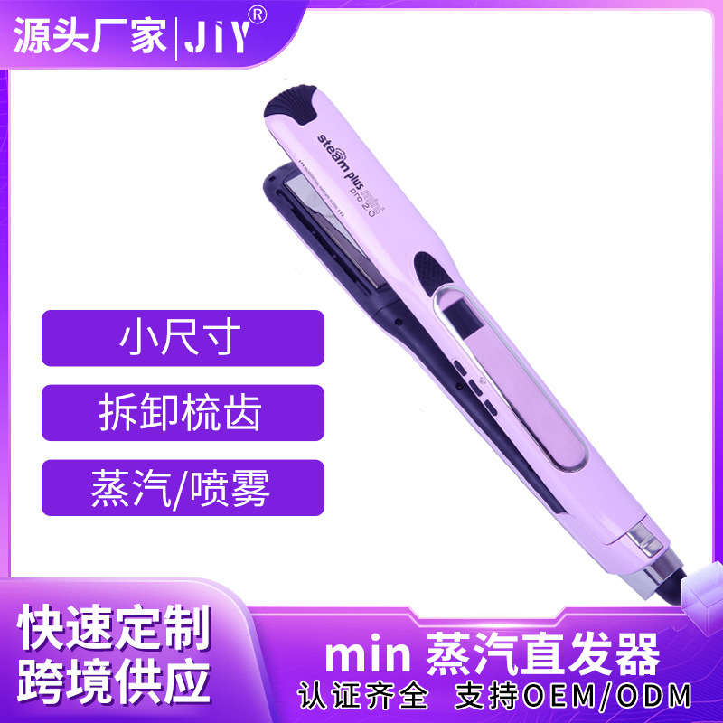 跨境新款mini蒸汽直发器负离子不伤发直卷两用陶瓷数显烫发器厂家