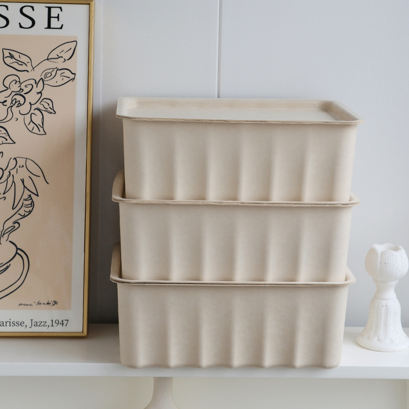 高档纸浆礼品盒桌面收纳盒可堆叠居家办公收纳箱环保可降解大号盒