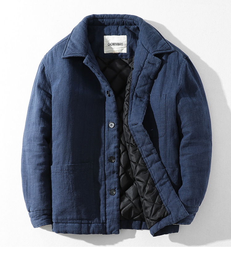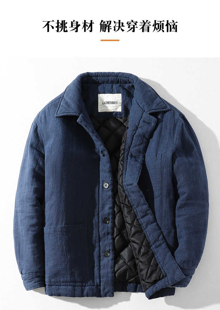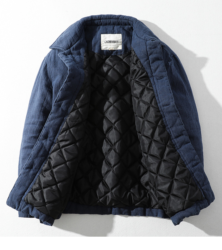 L113レトロ中国風立襟保温カジュアル綿入れの男性はゆったりしています。