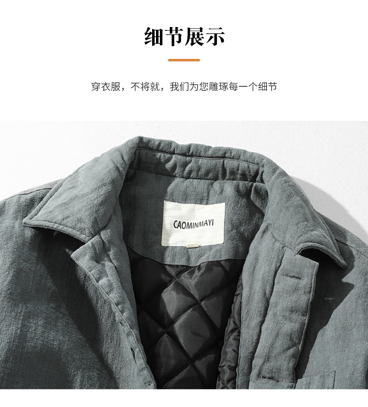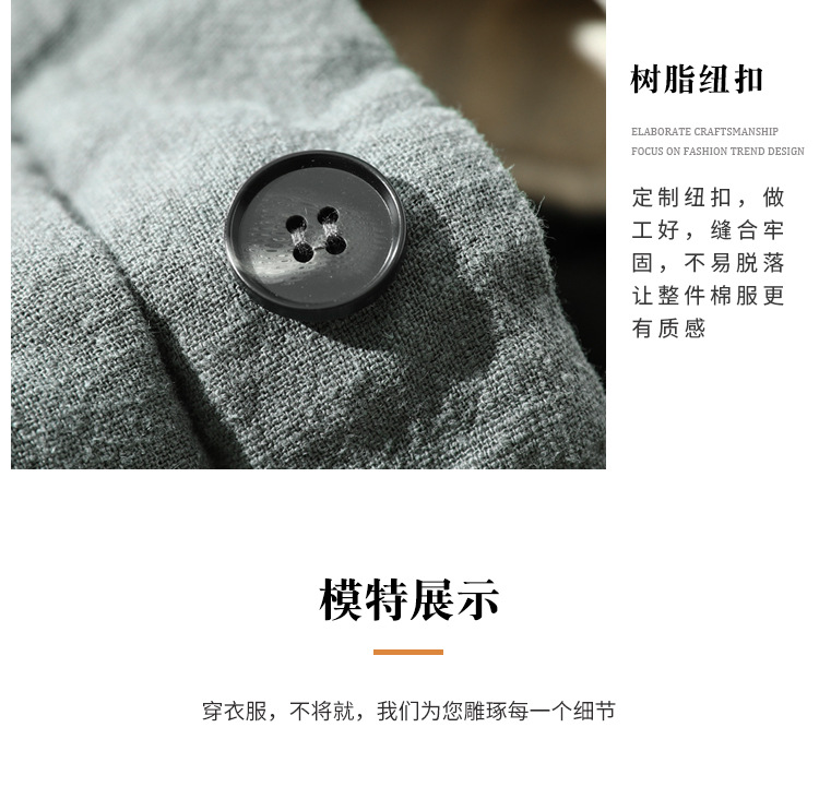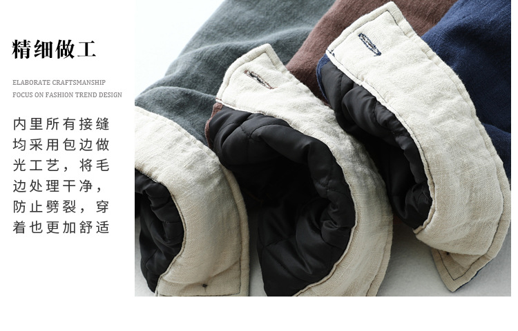 男性綿麻唐風綿服コートは綿を厚くして保温します。