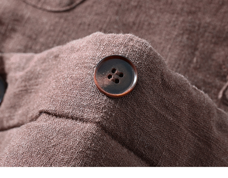 春秋季男士新款棉麻衬衫外套休闲宽松薄款透气苎麻翻领开衫-稻香