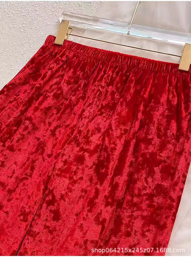 新款金丝绒睡衣女春秋冬季红色本命年家居服山茶花套装高级感外穿