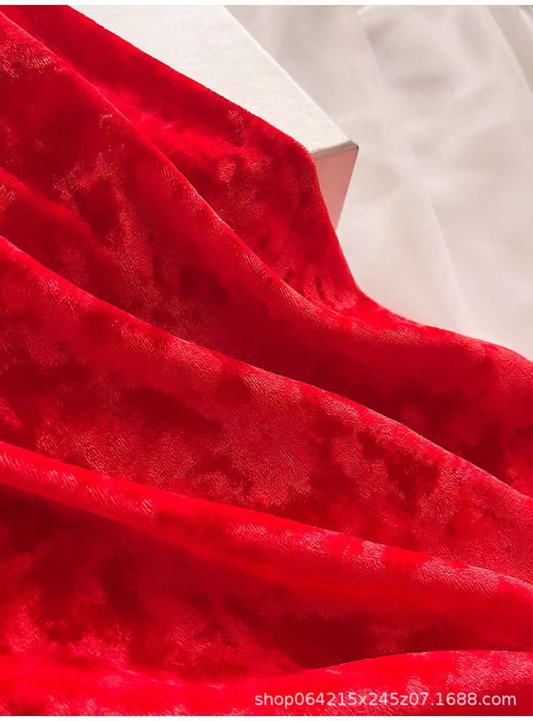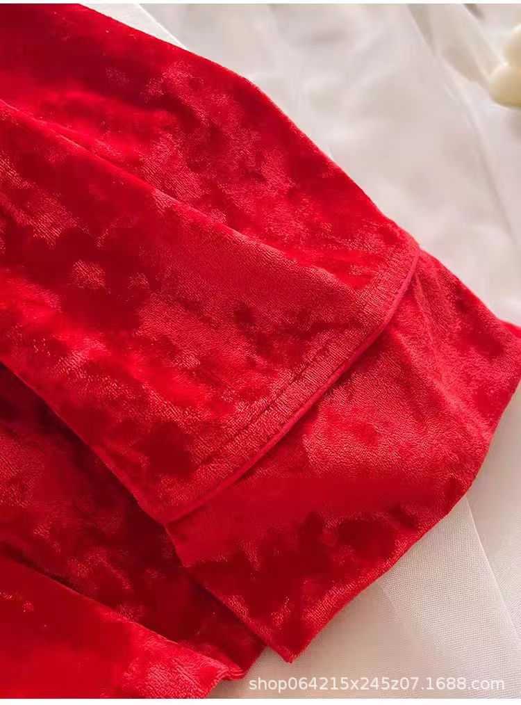 フランスの花嫁の朝の服の高級感秋の冬の赤いベルベットの結婚のパジャマの2つのセットの結婚式のパジャマの本命年