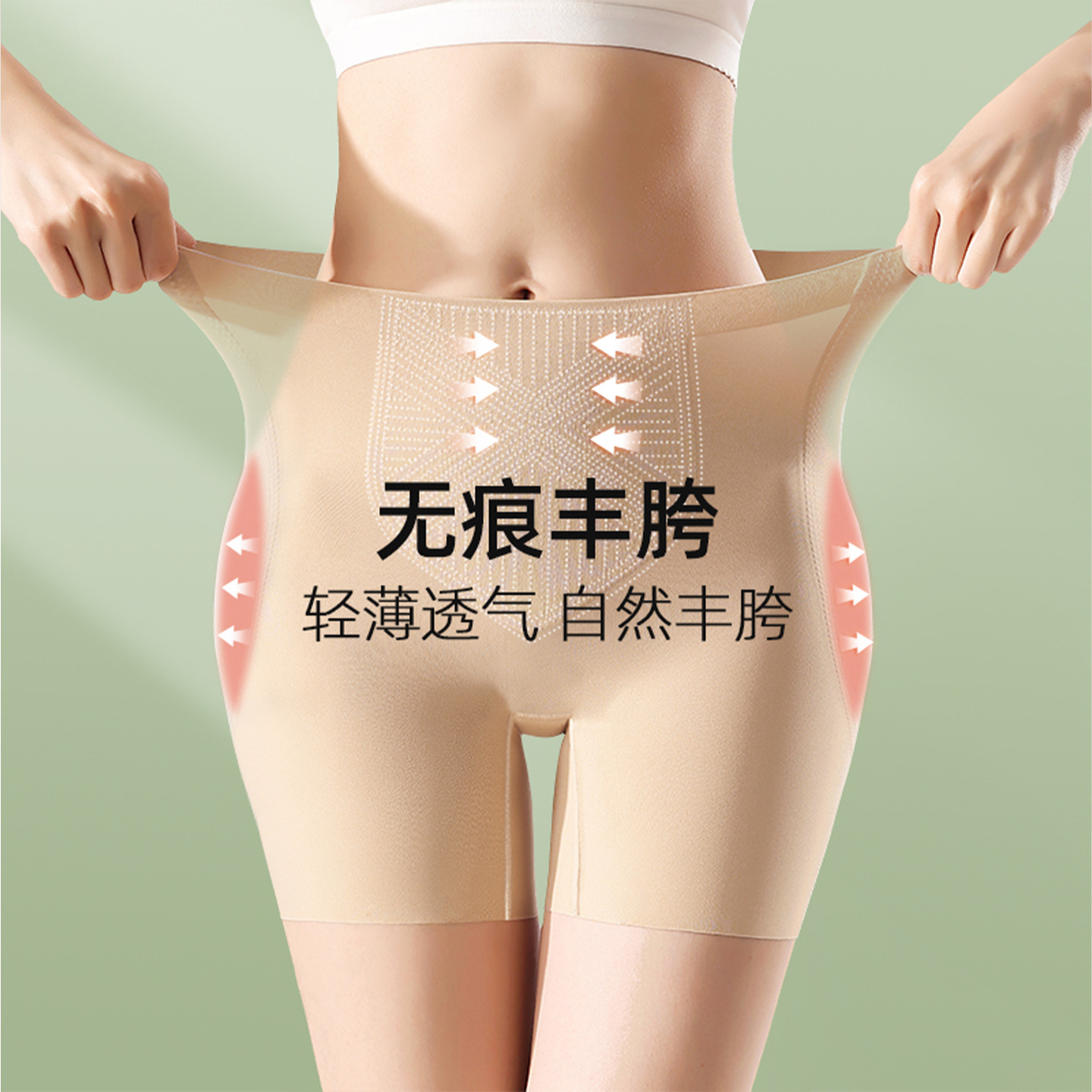 ミッドハイウエスト偽股偽尻安全パンツ、ヒップアップ加工品、ヒップアップ下着、オールインワンお腹引き締めヒップアップパンツ、夏