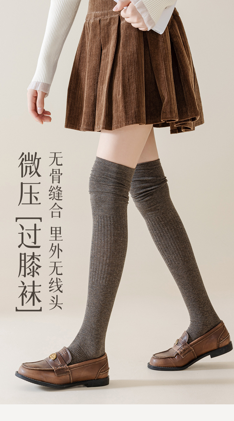 一体色紡織圧力過膝靴下骨なし抗菌防臭抗起球綿質吸汗微圧中厚タイプ圧力靴下