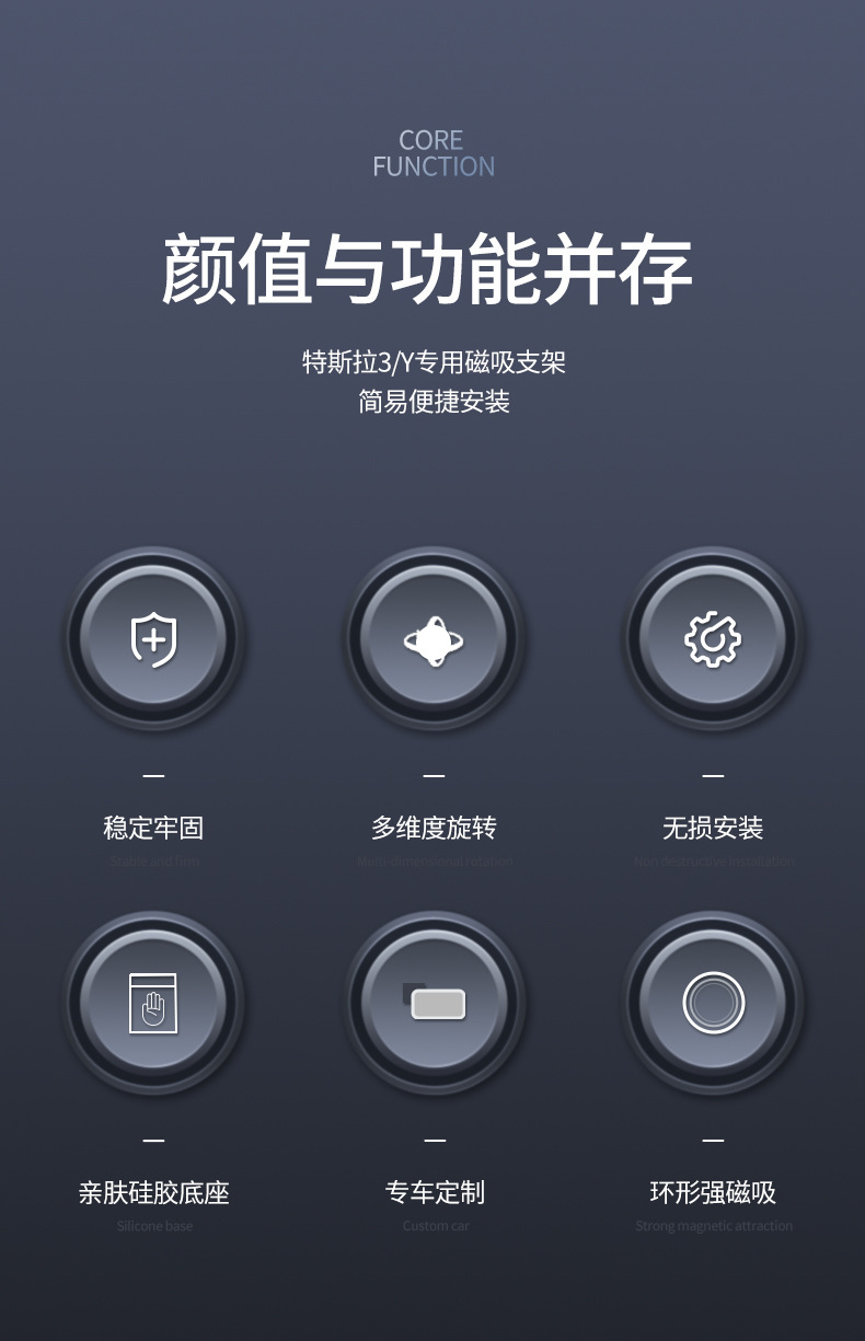 适用于特斯拉焕新版modely3/y/YL手机支架式无胶圆盘磁吸支架批发