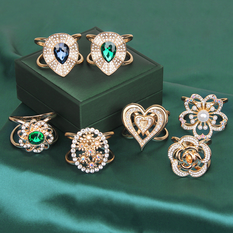 ファッション百合双cクロスパール微嵌マフラー固定ボタンコートベルト金属シルクタオルボタン軽豪華大衆