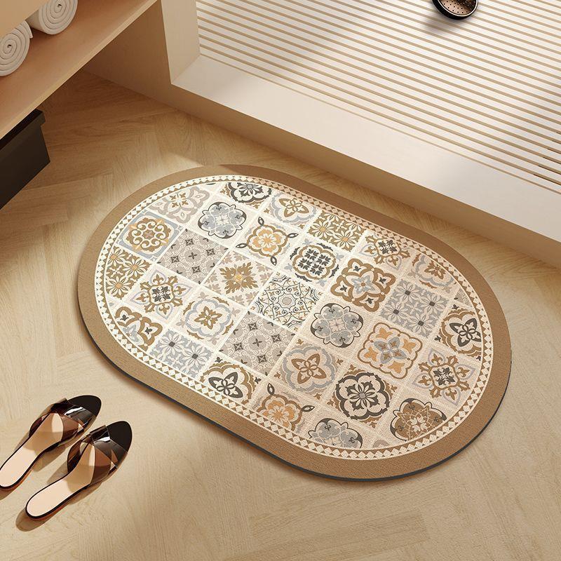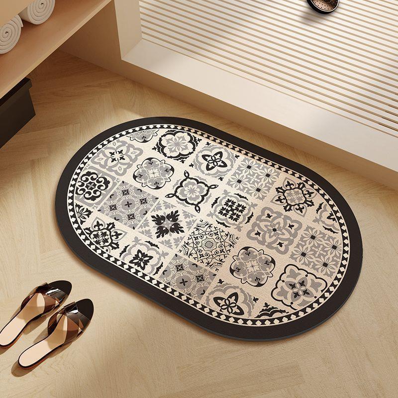 浴室マットレトロ北欧珪藻泥マット滑り止め吸水速乾足マットトイレ入り口楕円足マット