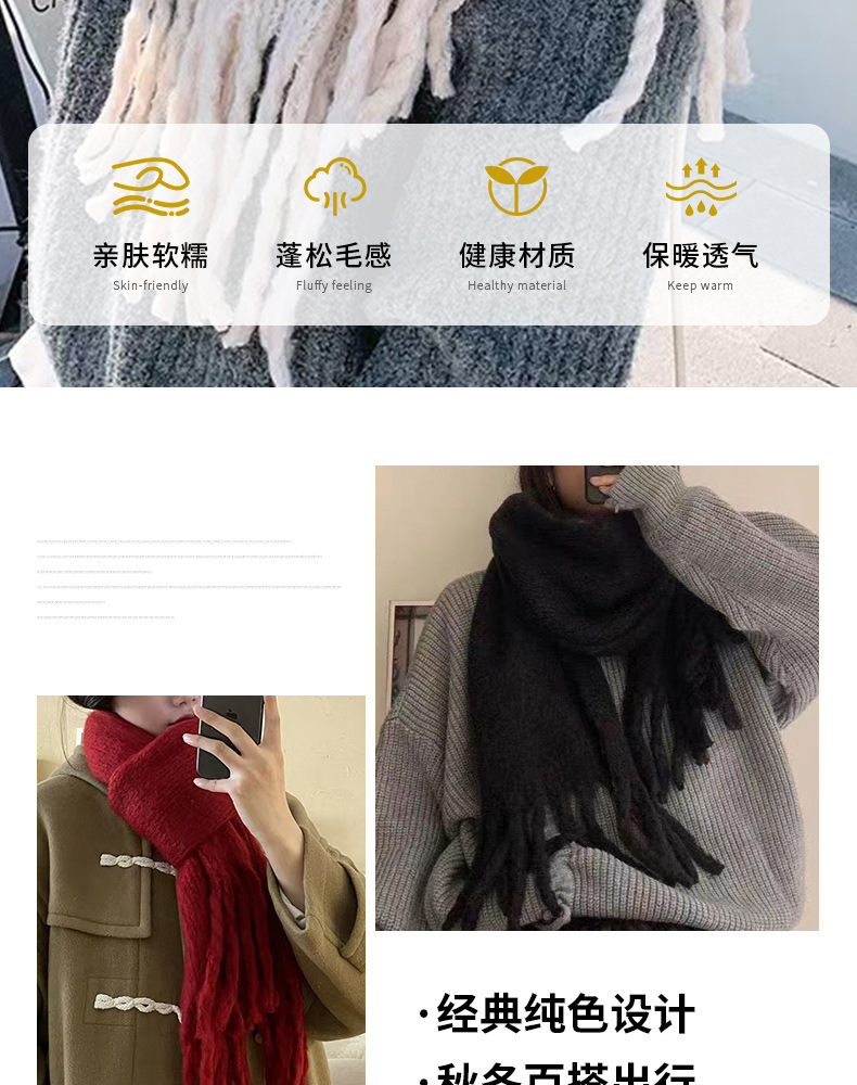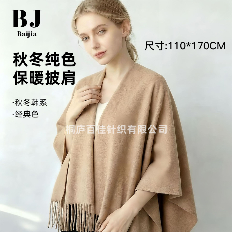 跨境纯色仿羊绒披肩女秋冬季旅游百搭保暖围巾加厚流苏办公室披肩