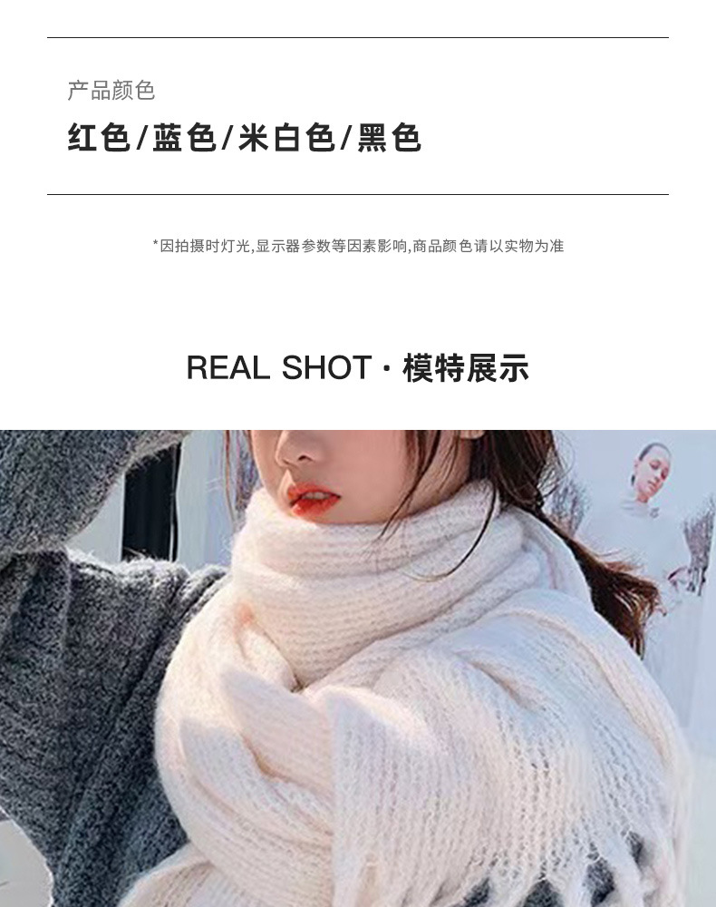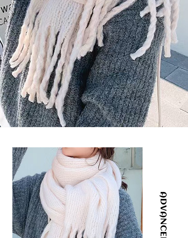 厚い白いマフラーはカシミヤのようです。冬は高級感があります。