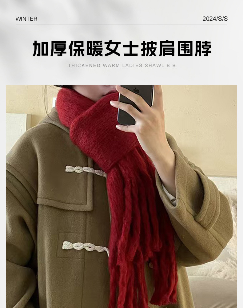 韓国版の赤いマフラーの女性の冬のクリスマスの本命年の純色の百合は厚い保温の女性のマントが首を囲みます。