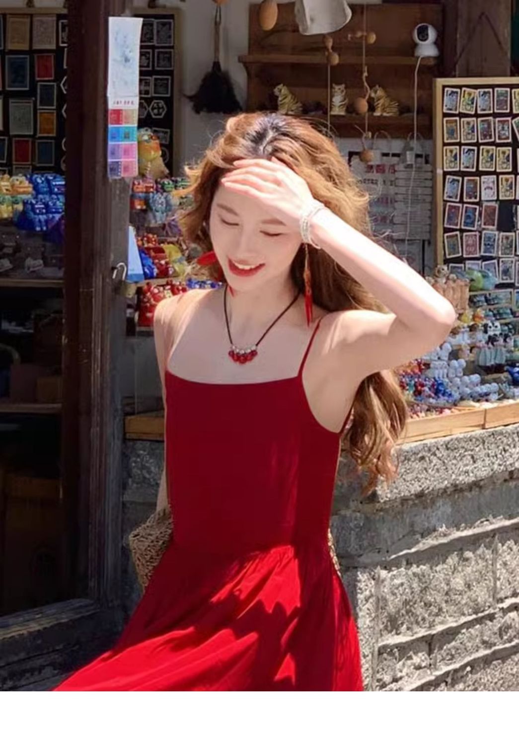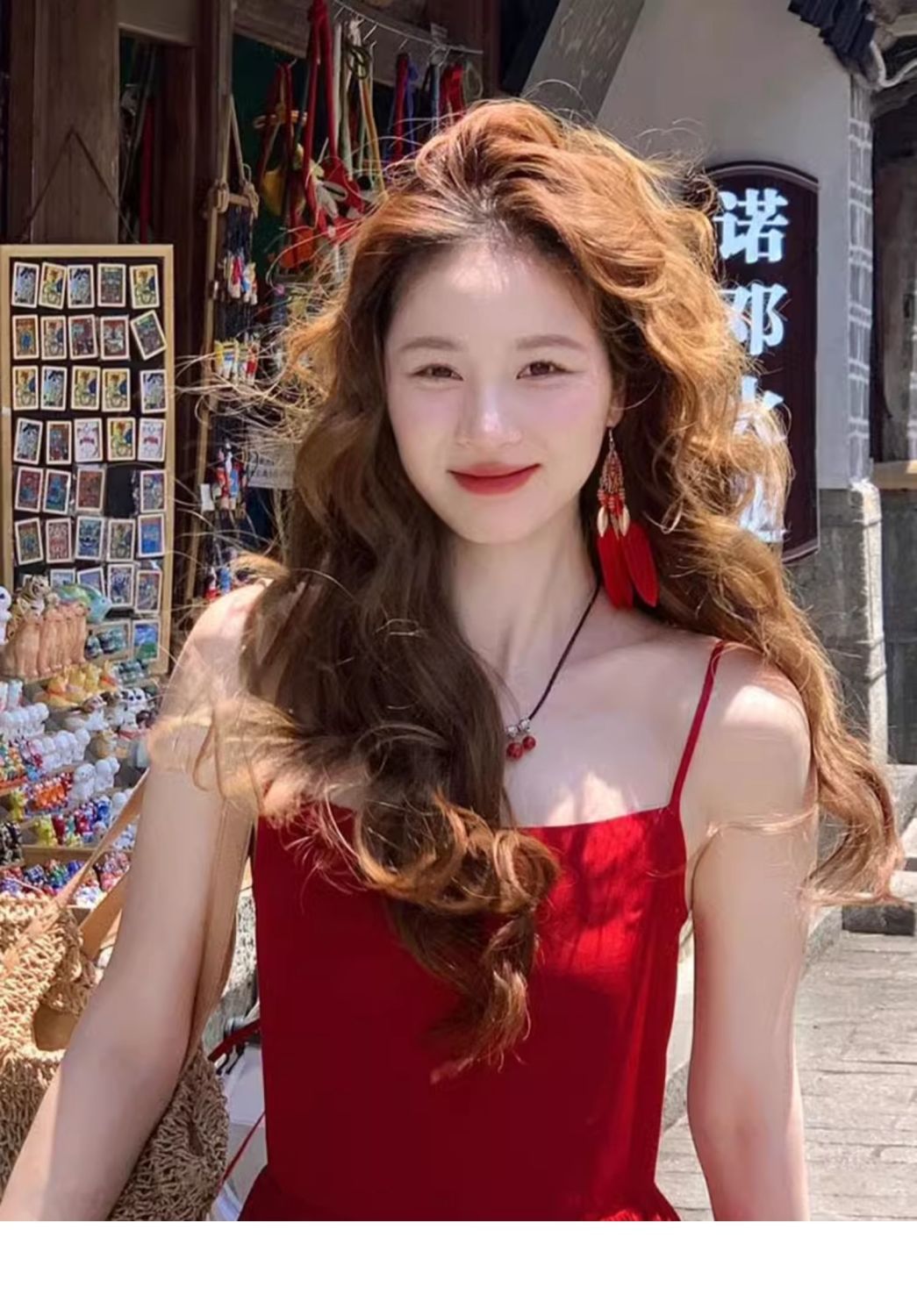 民族风红色串珠流苏波西米亚耳环云南旅游度假风小众耳夹羽毛耳饰