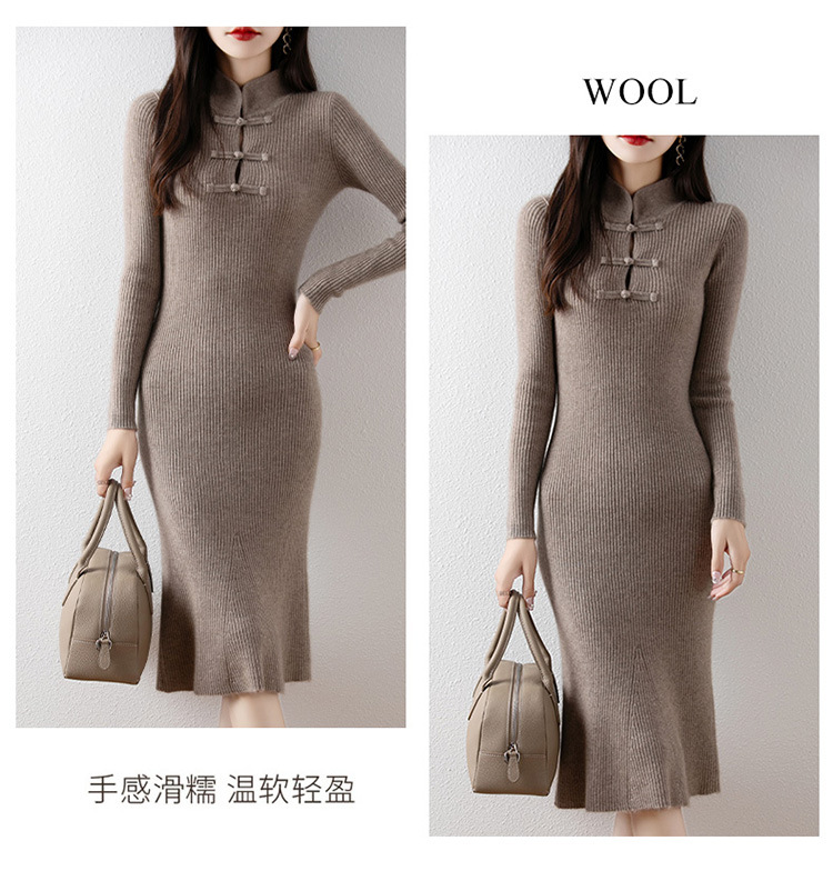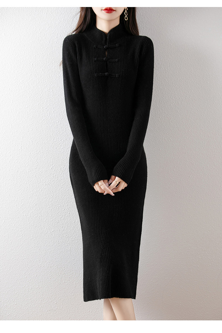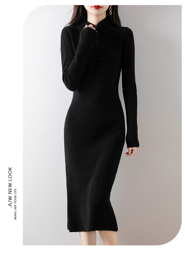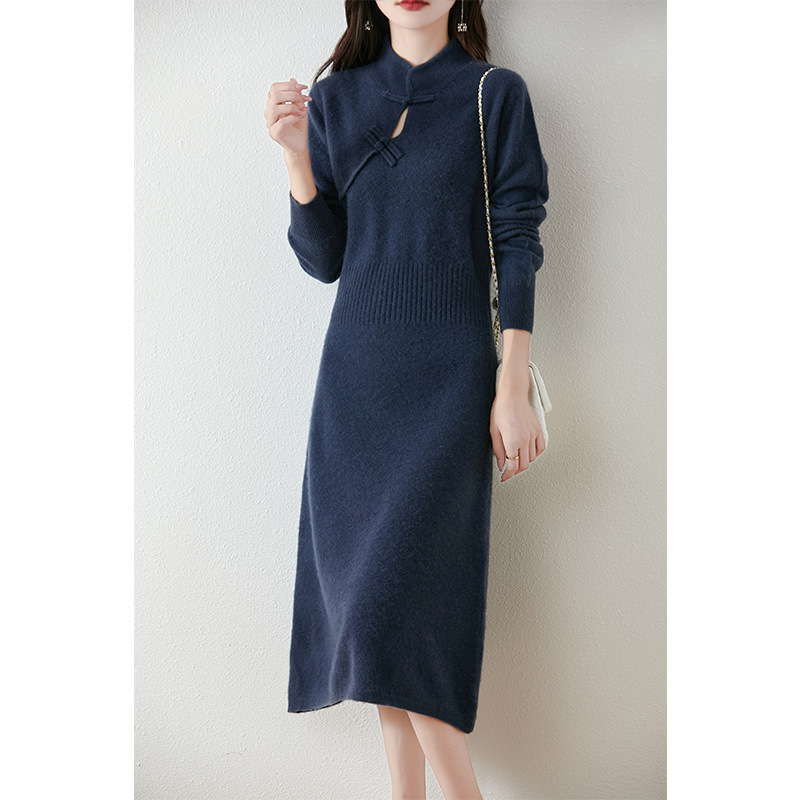 2024秋冬新中国式ニットワンピースのロングスカート