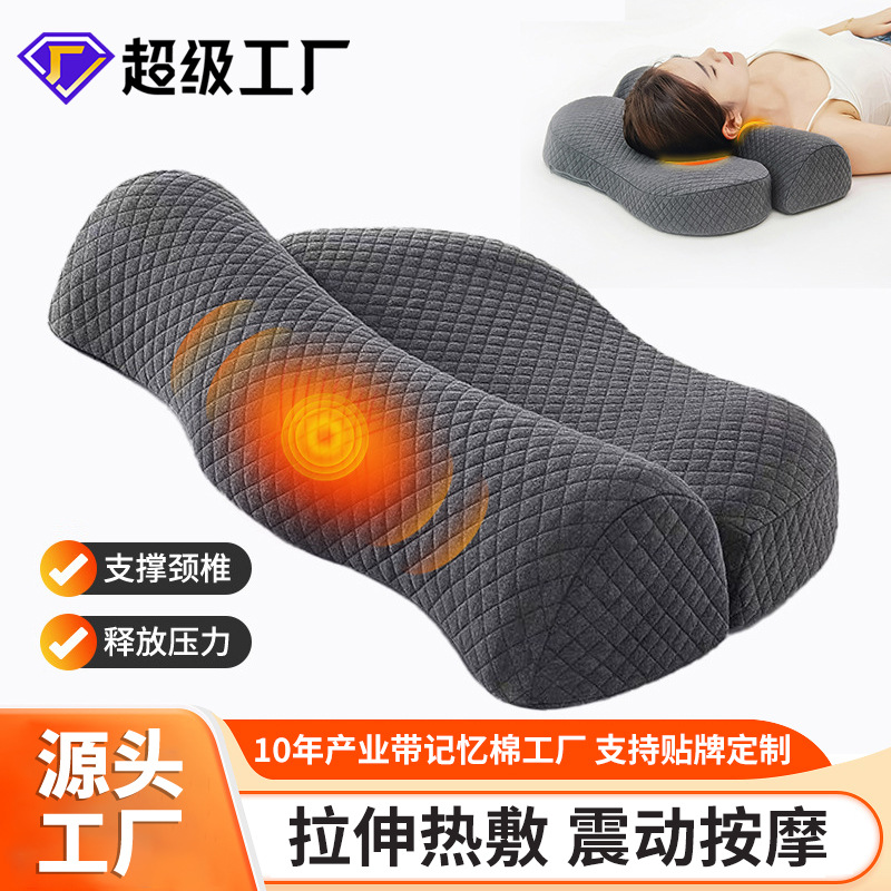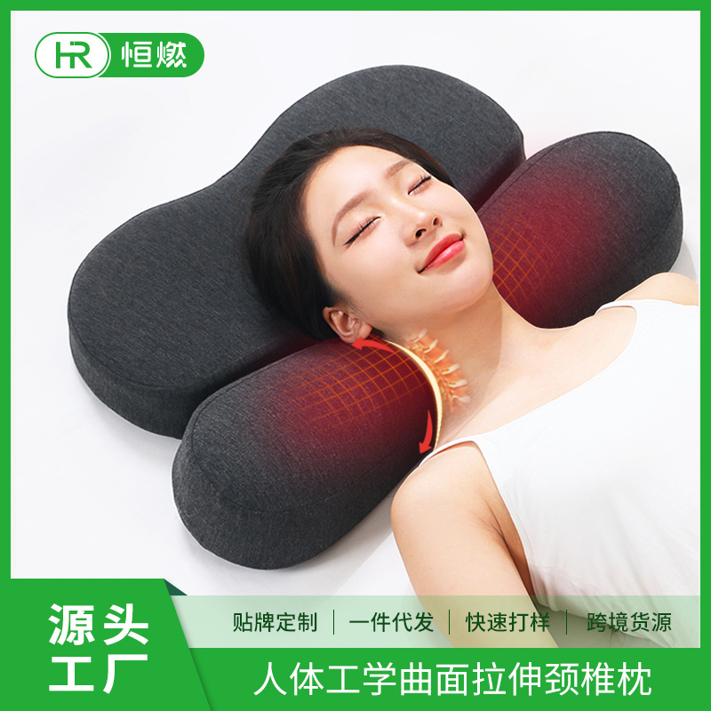 頸椎枕、牽引枕、マッサージ温湿布、低反発枕コア、純綿湾曲矯正、頸椎保護枕