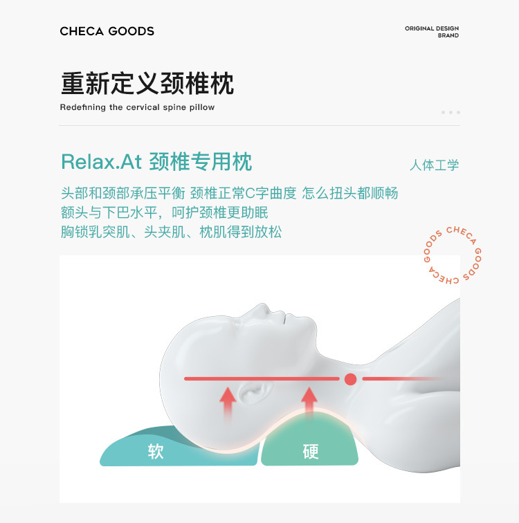 国境を越えた頸椎枕、リッチバッグ、特別な首枕、アンチアーチ低反発、快適な睡眠、横向き寝、取り外し可能、洗える