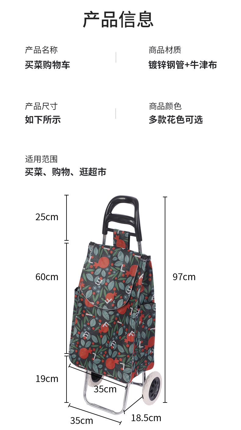 跨境爆款家用可折叠买菜购物车超市购物便携式防水拉杆车外出拖车