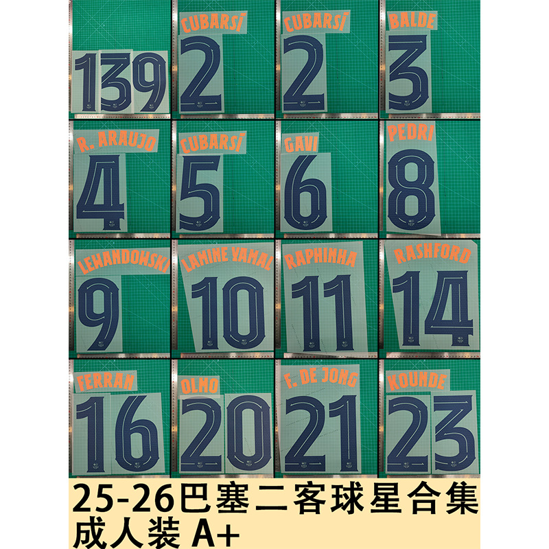 25-26巴塞欧冠二客合集 成人装 B货 球衣号字母烫画号码热转印贴