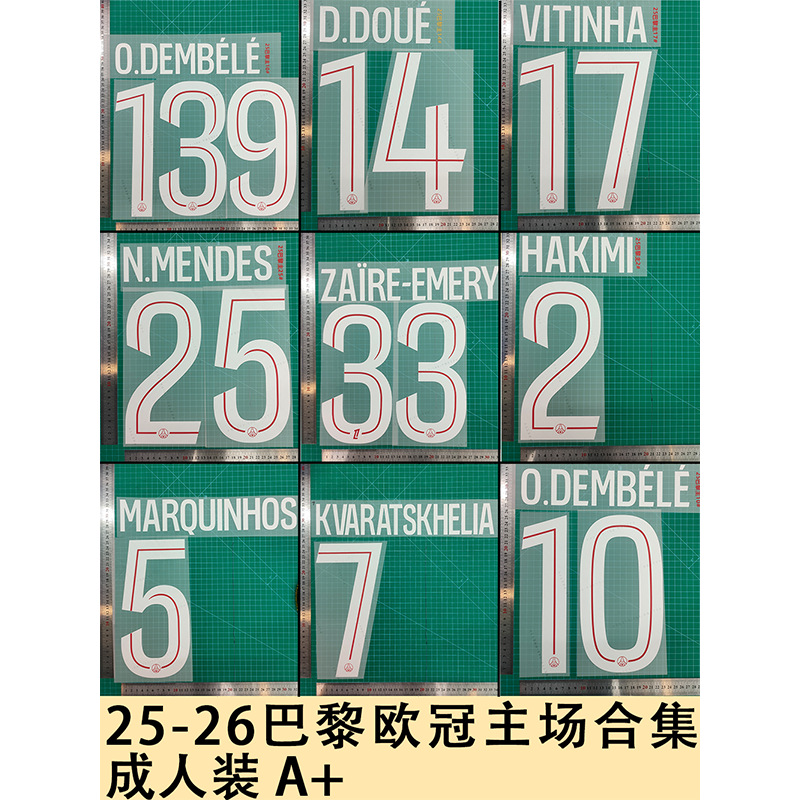 25-26巴黎欧冠主场合集 成人装 A+ 球衣号字母烫画号码热转印贴图