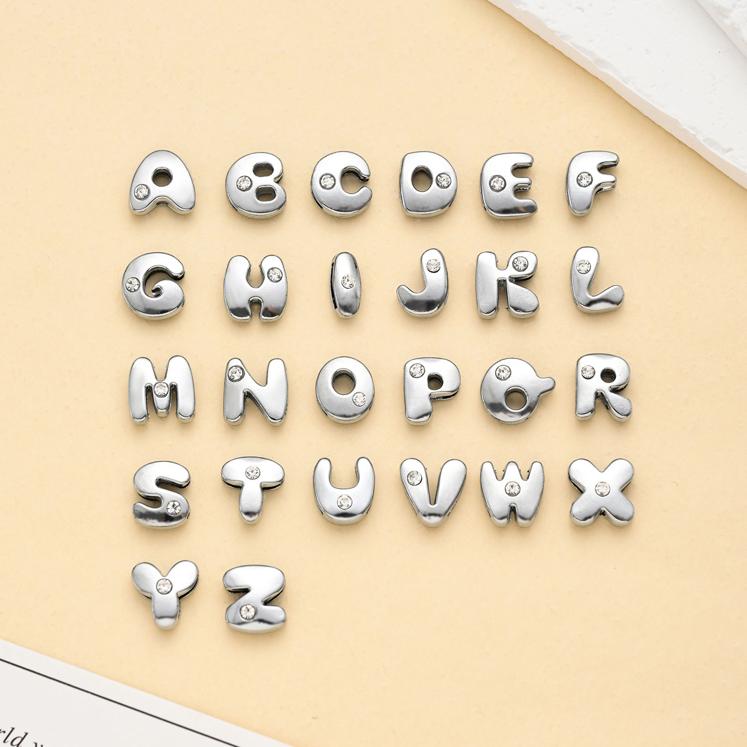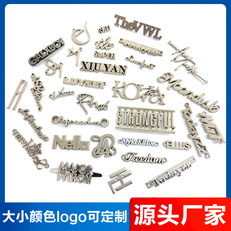 厂家供应锌合金批发纯英文字母标牌 压铸合金箱包金属插脚标