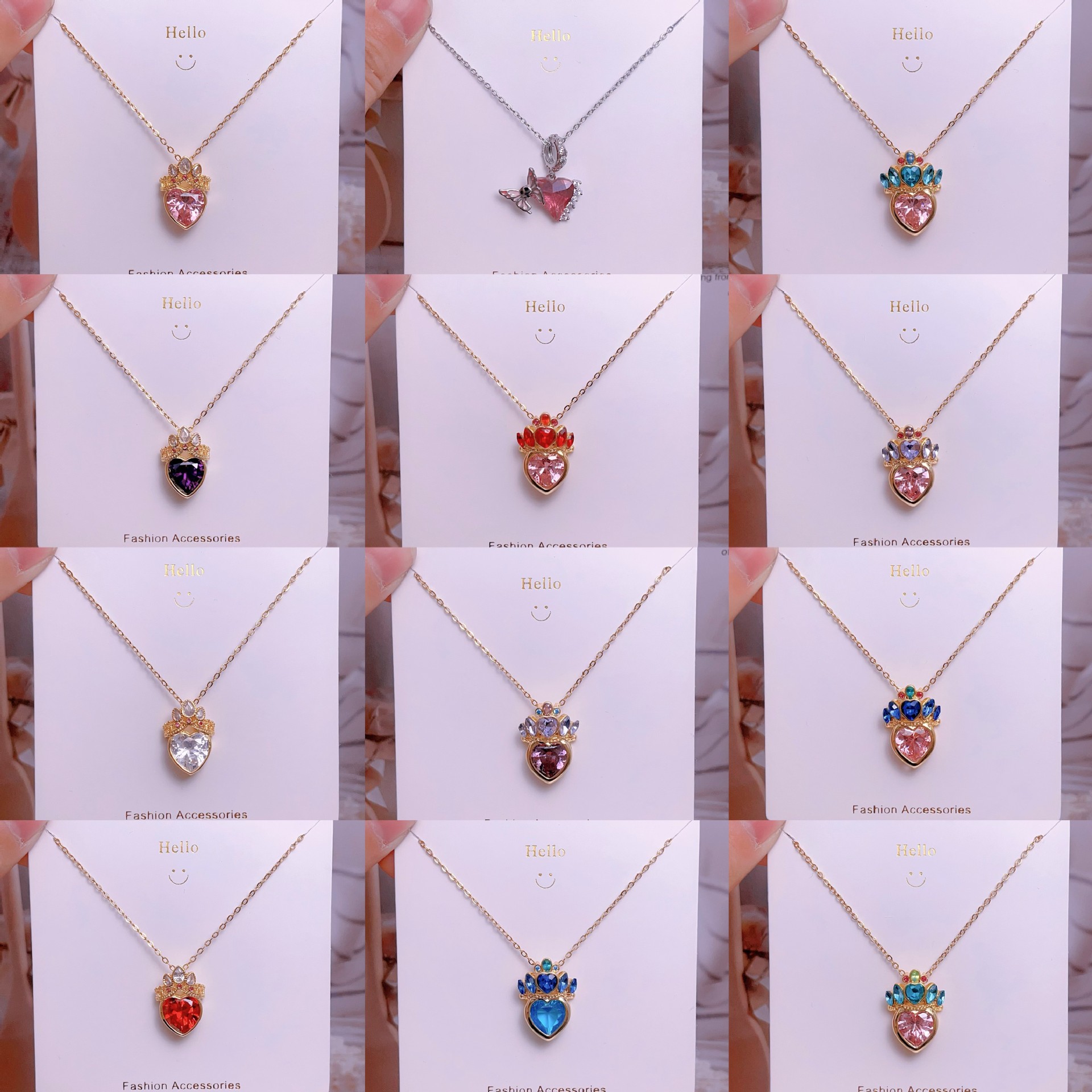 チタン鋼の鎖のピンクの王冠の愛のネックレスの女性は国境を越えて熱い販売をします。