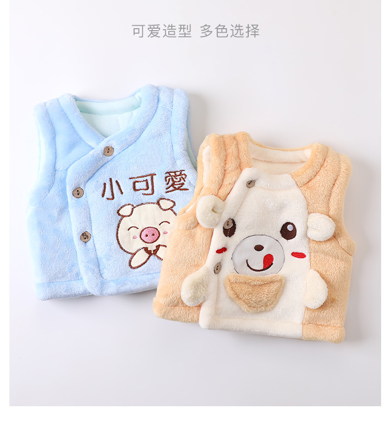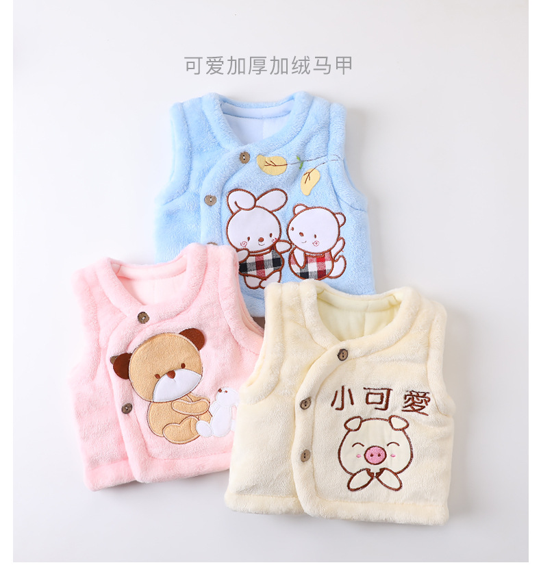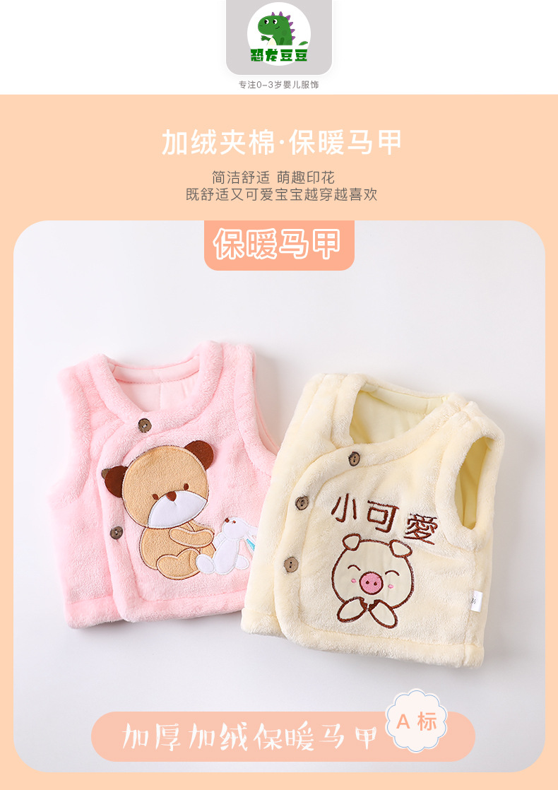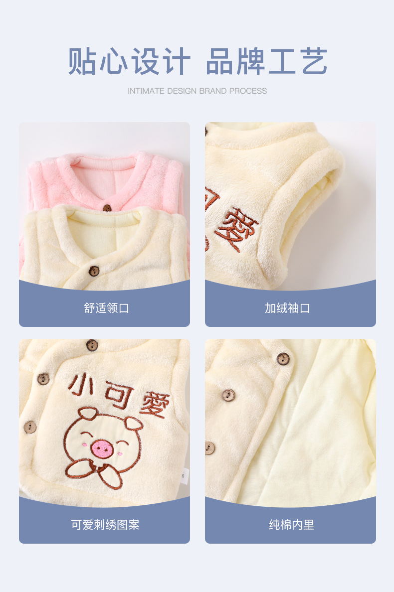 赤ちゃんのベストはサンゴのベルベットのベストを開けて、男女のベストを挟んで、赤ちゃんが外出してお腹を守る0-3歳の赤ちゃんです