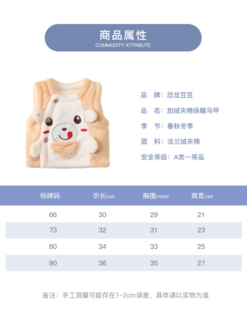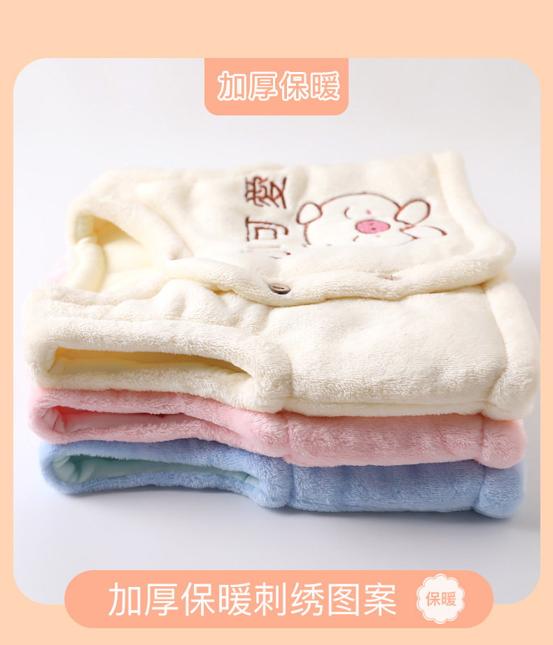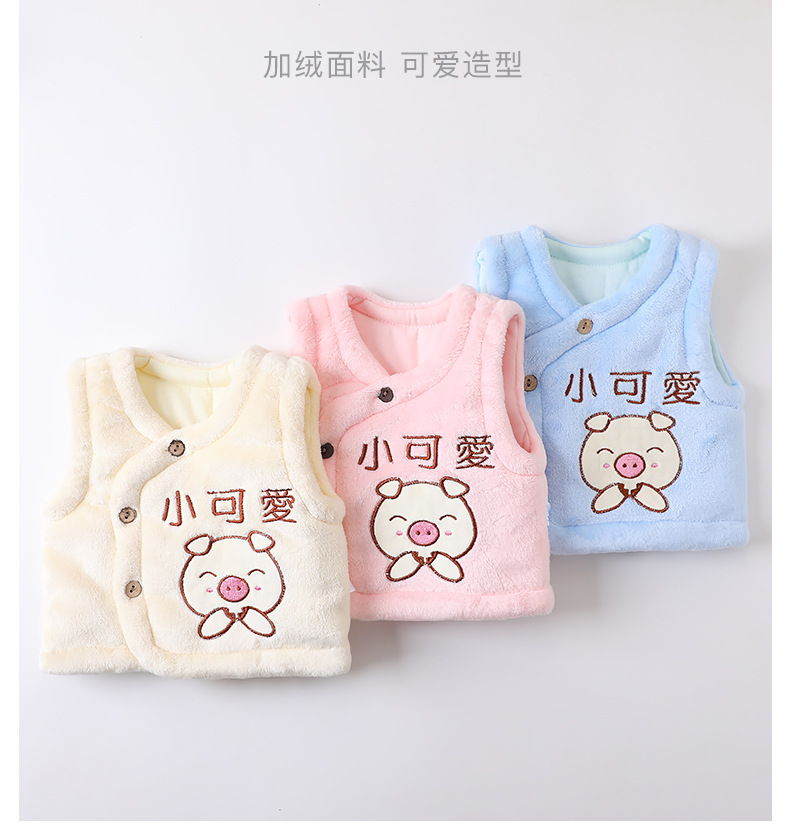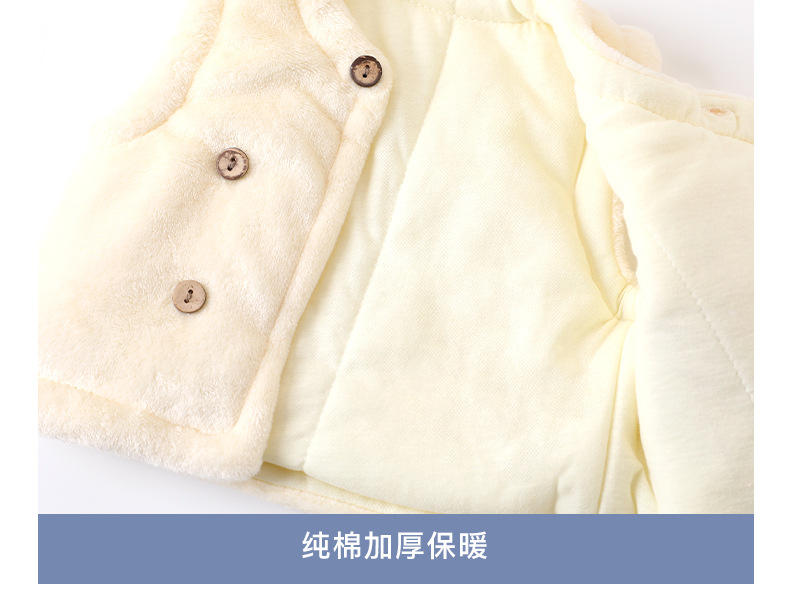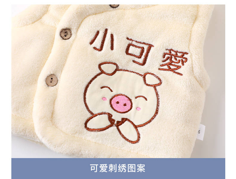 赤ちゃんのベストはサンゴのベルベットのベストを開けて、男女のベストを挟んで、赤ちゃんが外出してお腹を守る0-3歳の赤ちゃんです