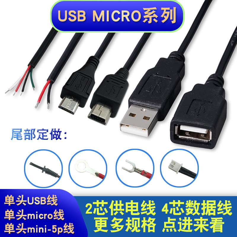 年鑫ミニ5p typecマイクロ単頭線アンドロイド座線2芯電源4芯充電ケーブル