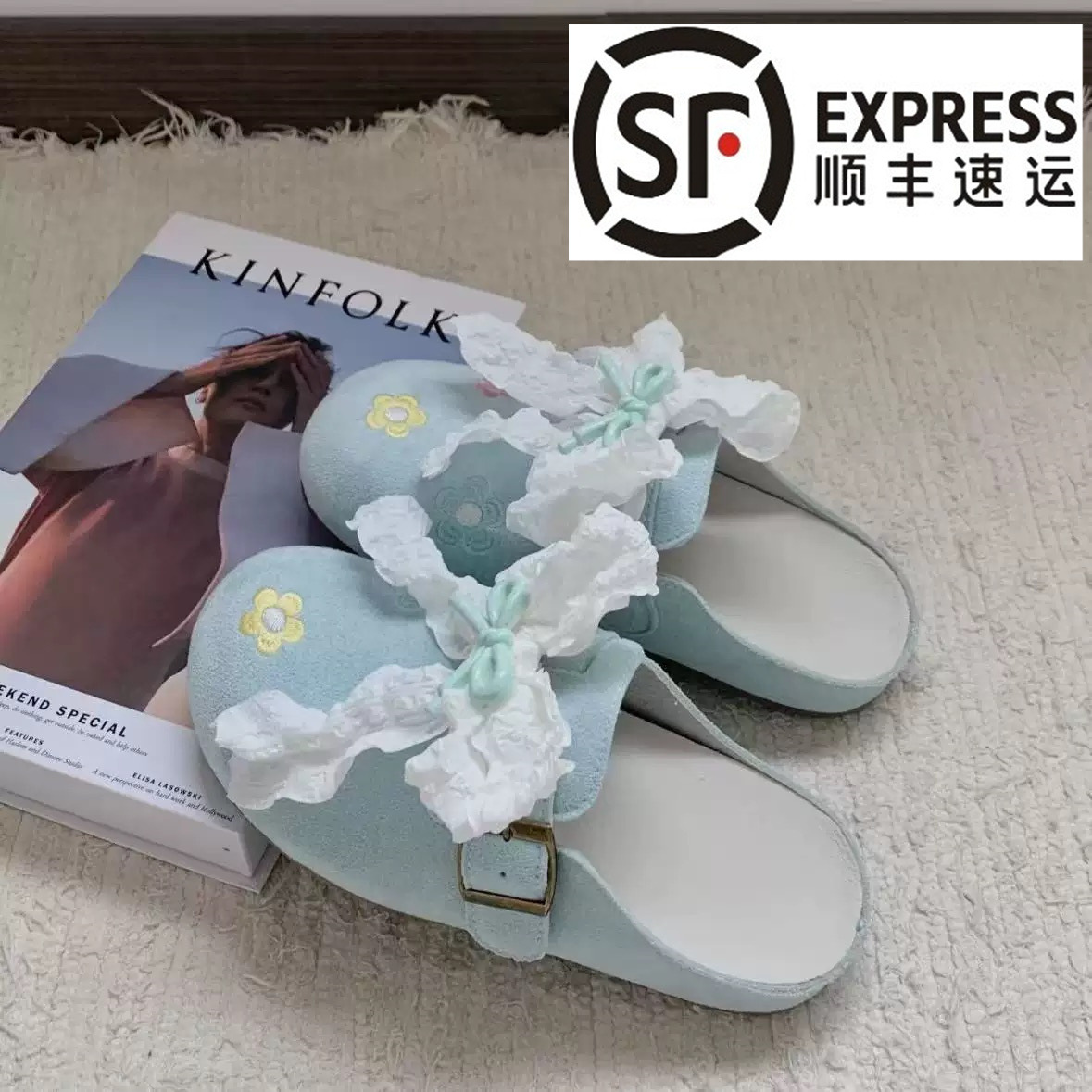 女性用多用途スリッポンスリッパ 2025 夏の新しいスタイルのリボンとスカート付き女性用トゥキャップハーフスリッパビルケンシュトックシューズ