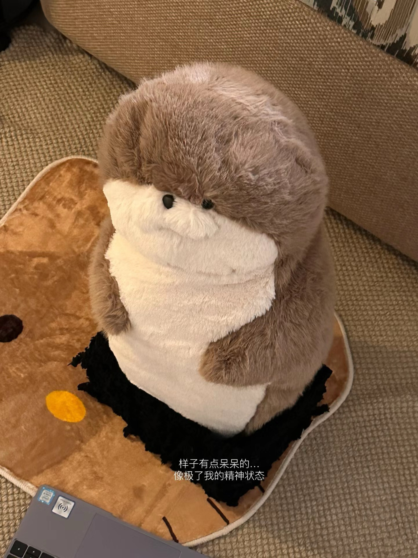 かわいいアザラシのぬいぐるみのおもちゃのベッドで寝ています。
