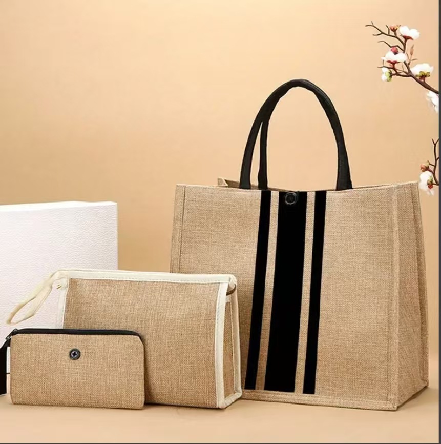 リネンハンドバッグバッグクロスボーダーヨーロッパとアメリカのファッションツーピースセット新しい大容量リネンショッピングバッグ