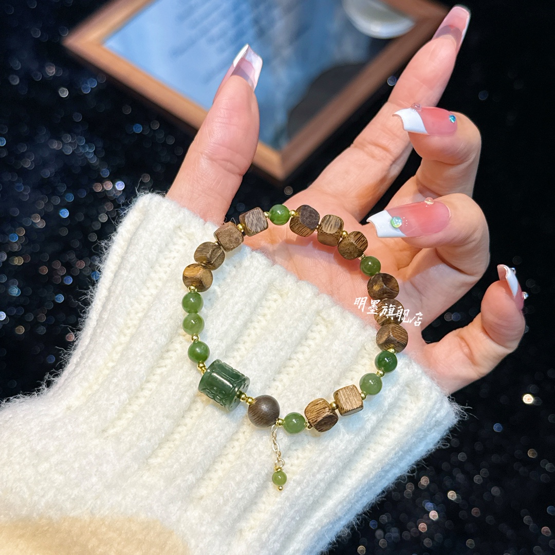 沉香映碧天然碧玉和田玉沉香古风设计清寂抚平波澜小众