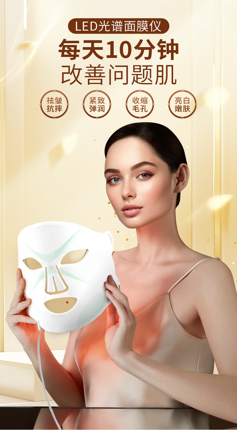 美肤面罩仪红蓝光脸部焕肤仪淡印嫩肤亮白大小排灯家用光子美容仪