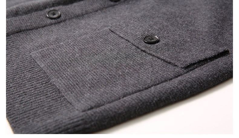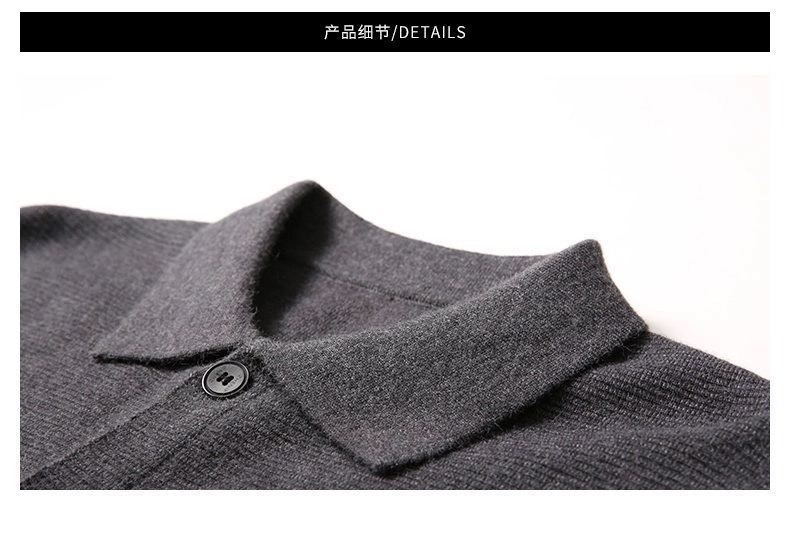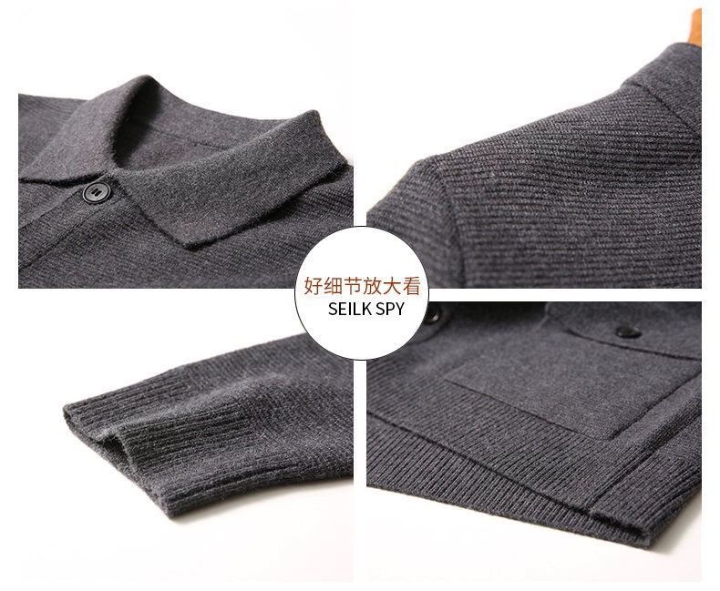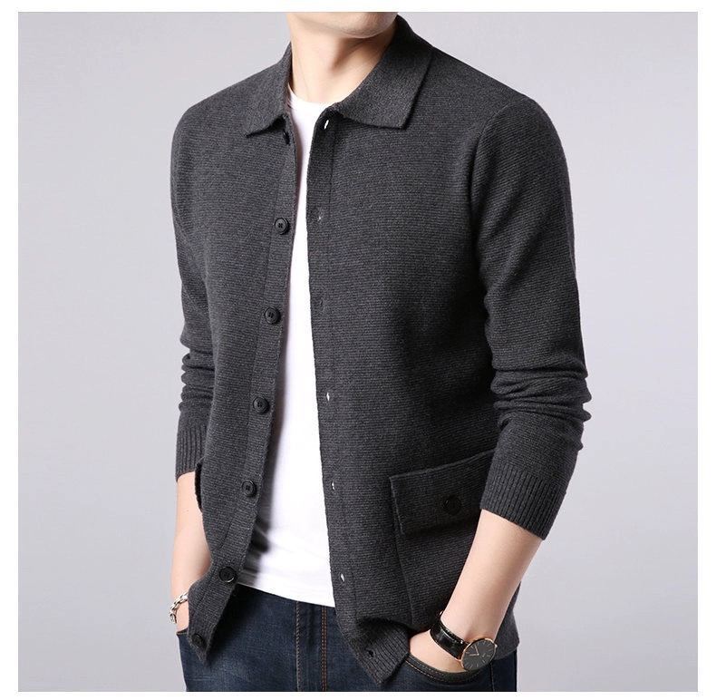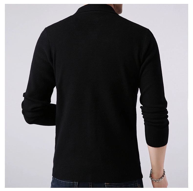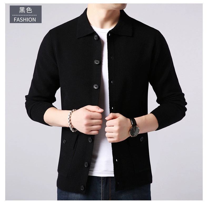 春と秋にカーディガンの男性ニットの襟をめくるコートの薄いボタンのセーターの中年のゆったりしたビジネス服のシャツの襟