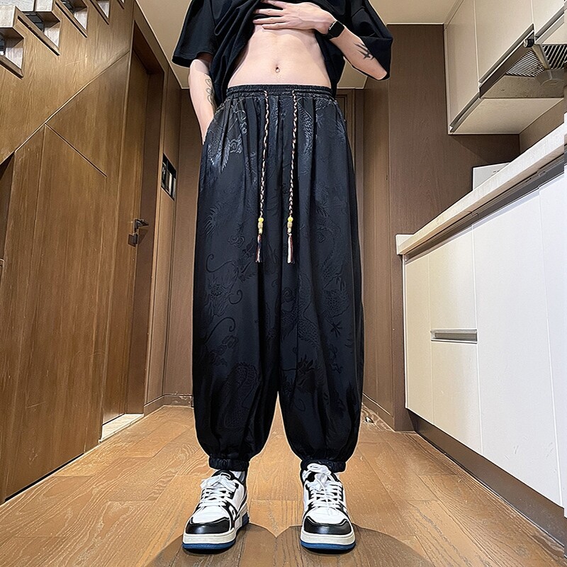 新しい中国風の薄いアイスシルクドラゴン柄カジュアルパンツ中国風レギンスブルマー