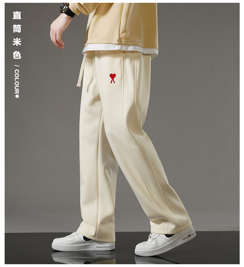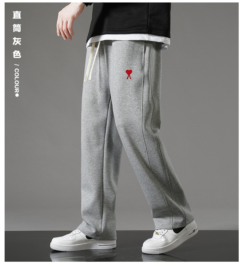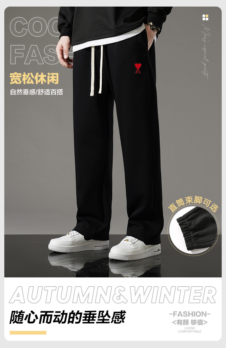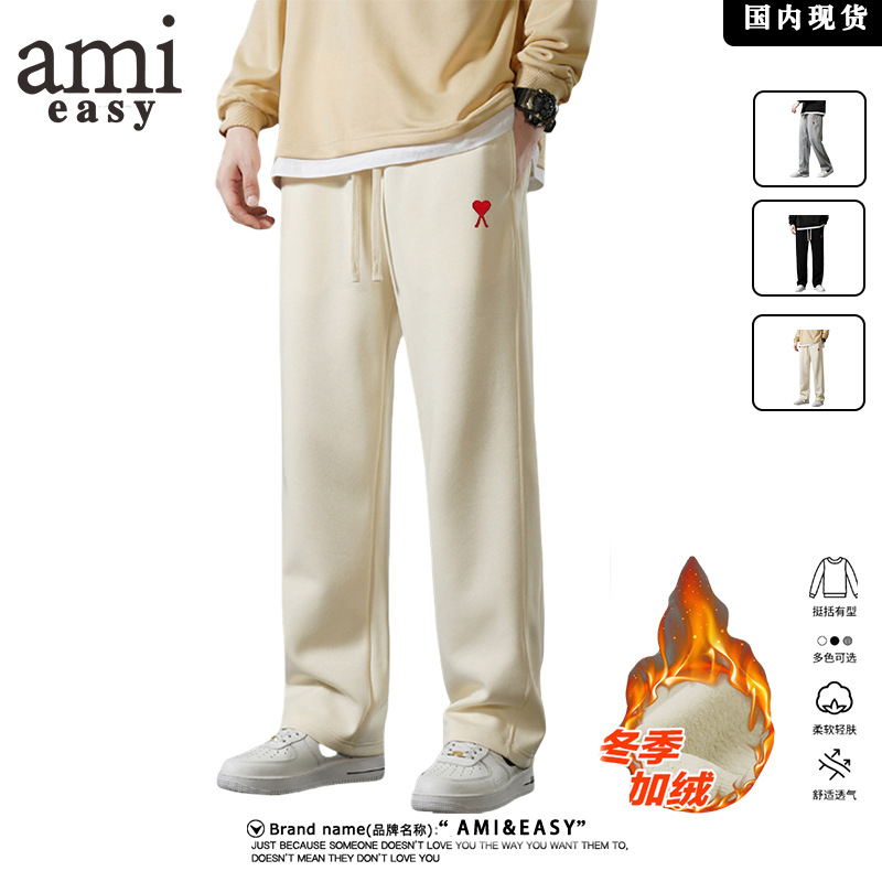 AMI&EASY2025秋冬加绒刺绣直筒休闲裤男简约百搭运动垂感长裤青年