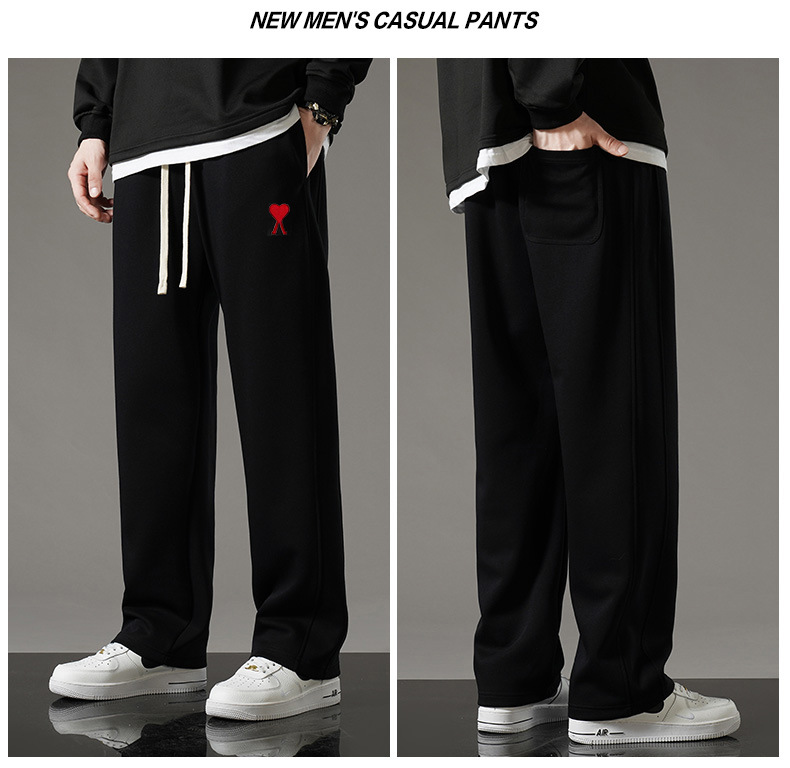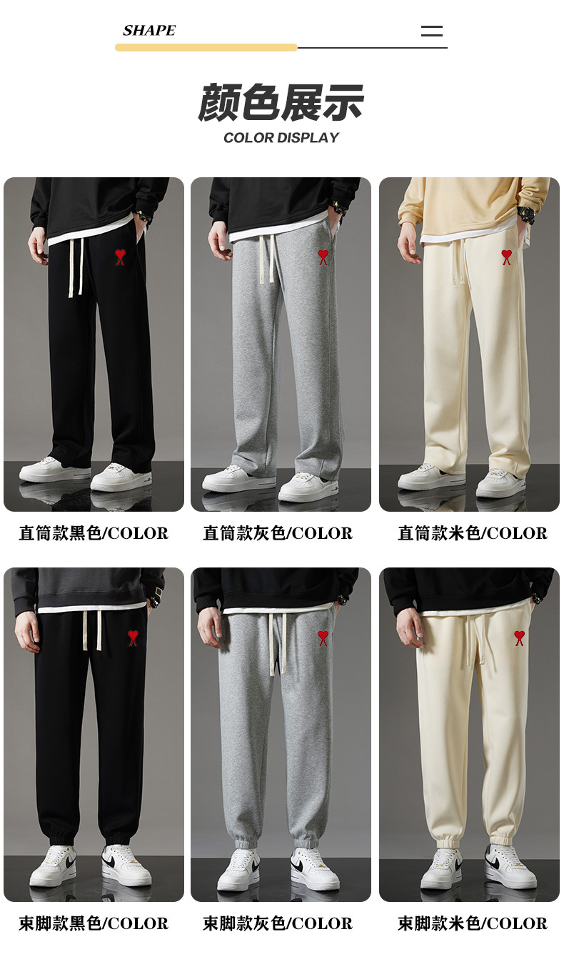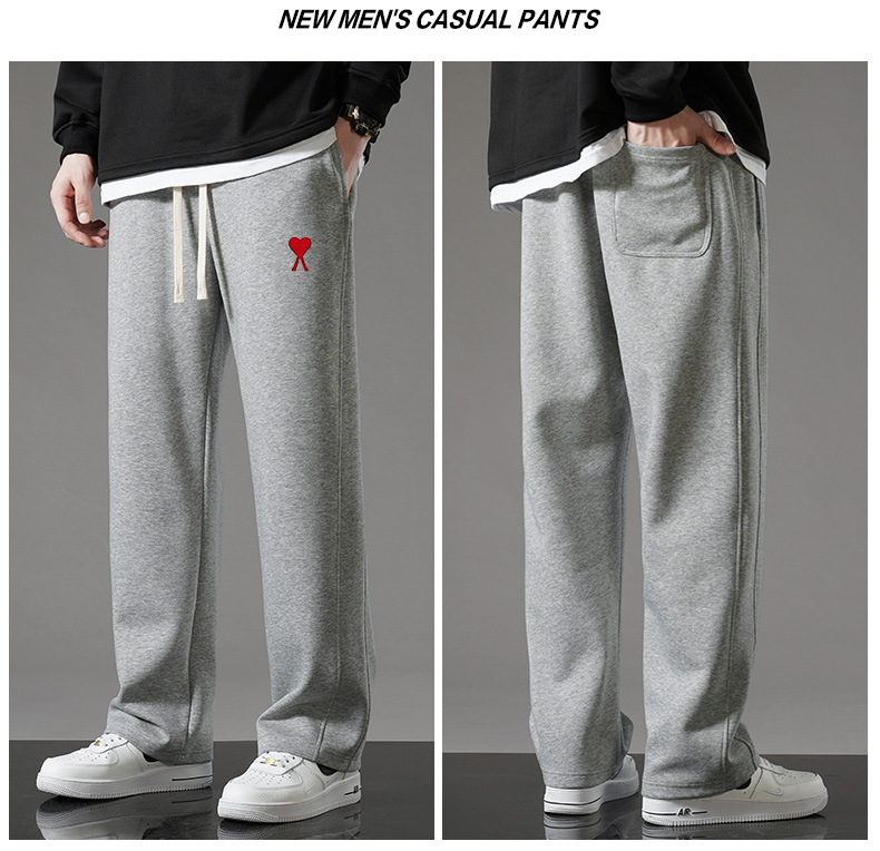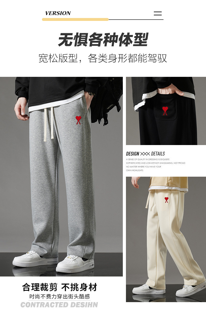 AMI&EASY2025秋冬加绒刺绣直筒休闲裤男简约百搭运动垂感长裤青年