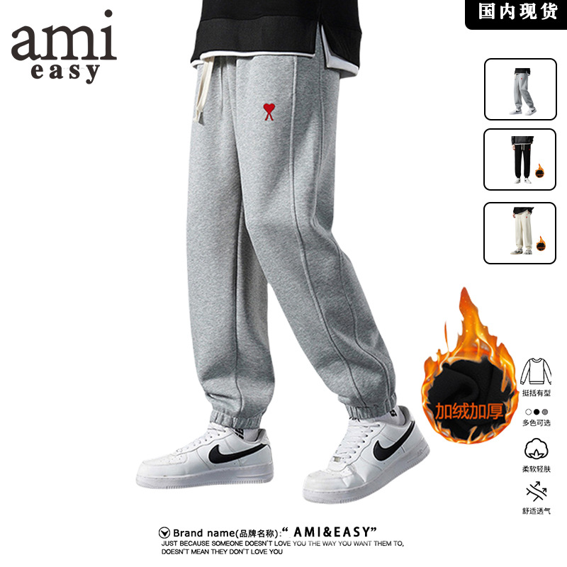 AMI&EASY潮牌秋冬加绒保暖束脚休闲裤男简约百搭运动卫裤现货青年