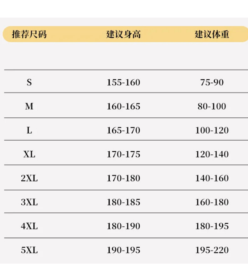 尺码 S,M,L,XL,2XL,3XL,4XL,5XL