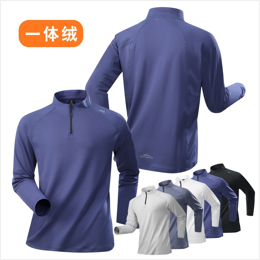 2025秋季新款运动长袖T恤男加绒宽松半拉链体恤户外跑步健身立领